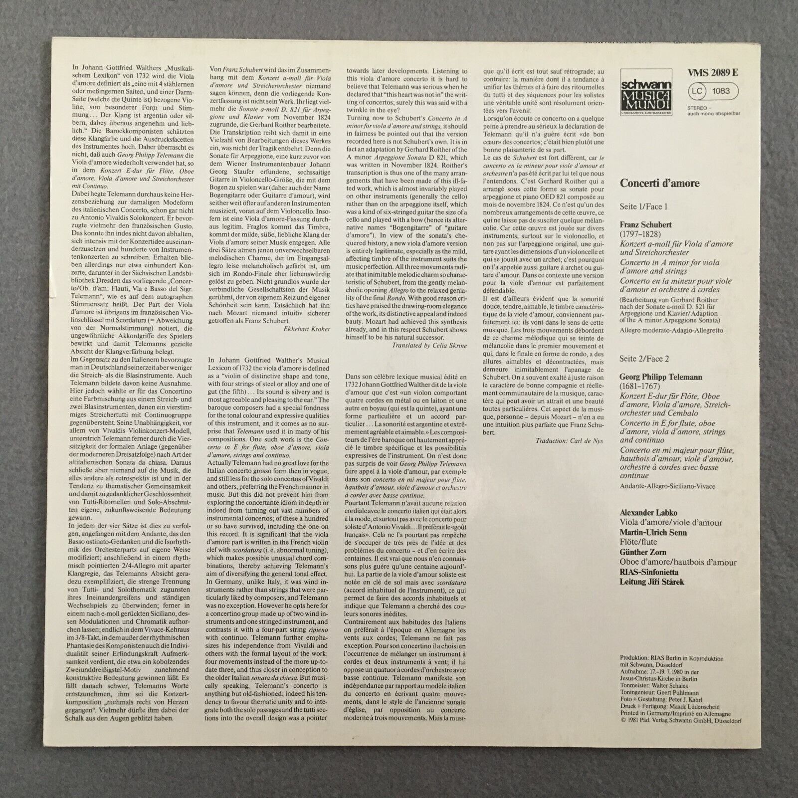 X425 Schubert String Concerto Labko Senn Starek Schwann VMS 2089 E Stereo
