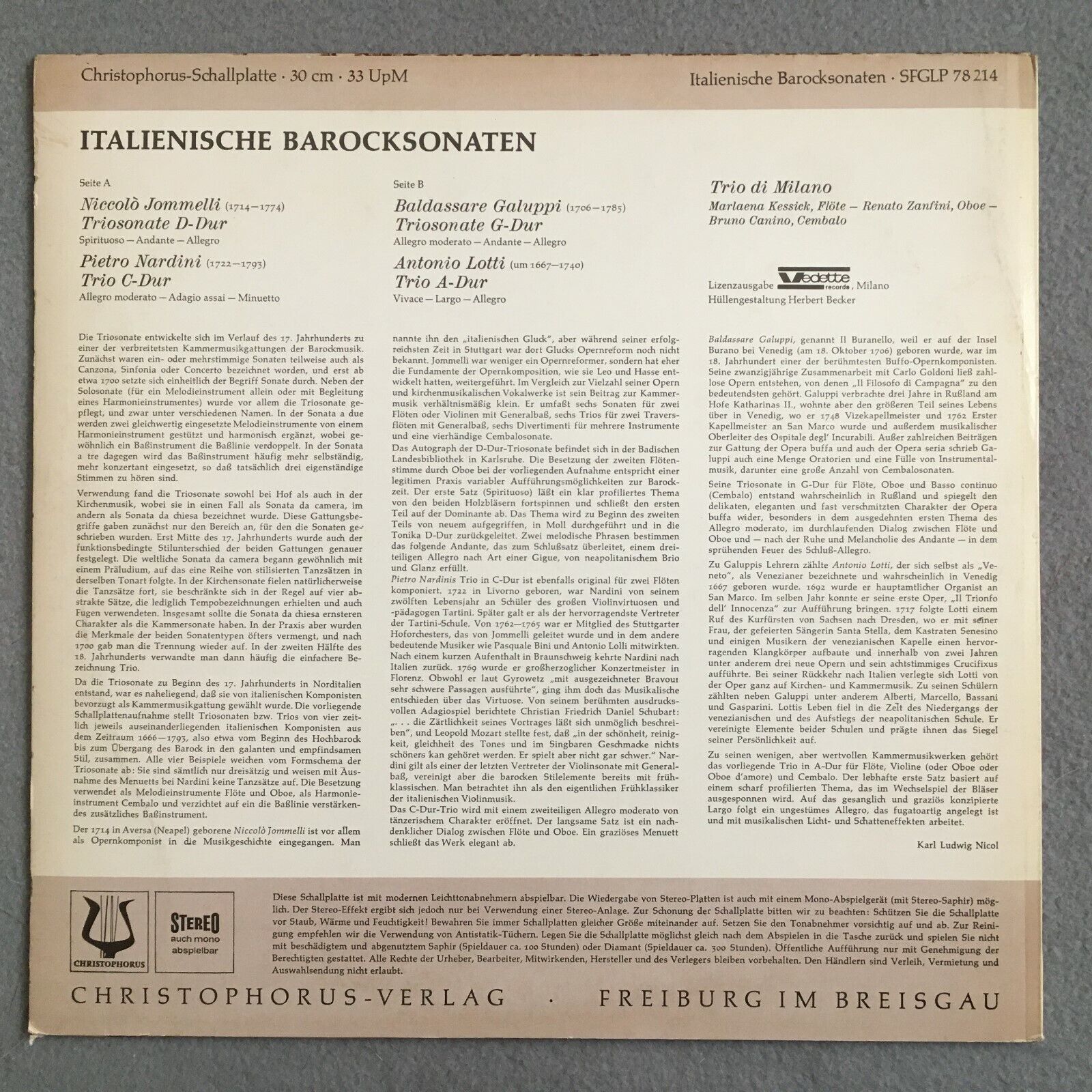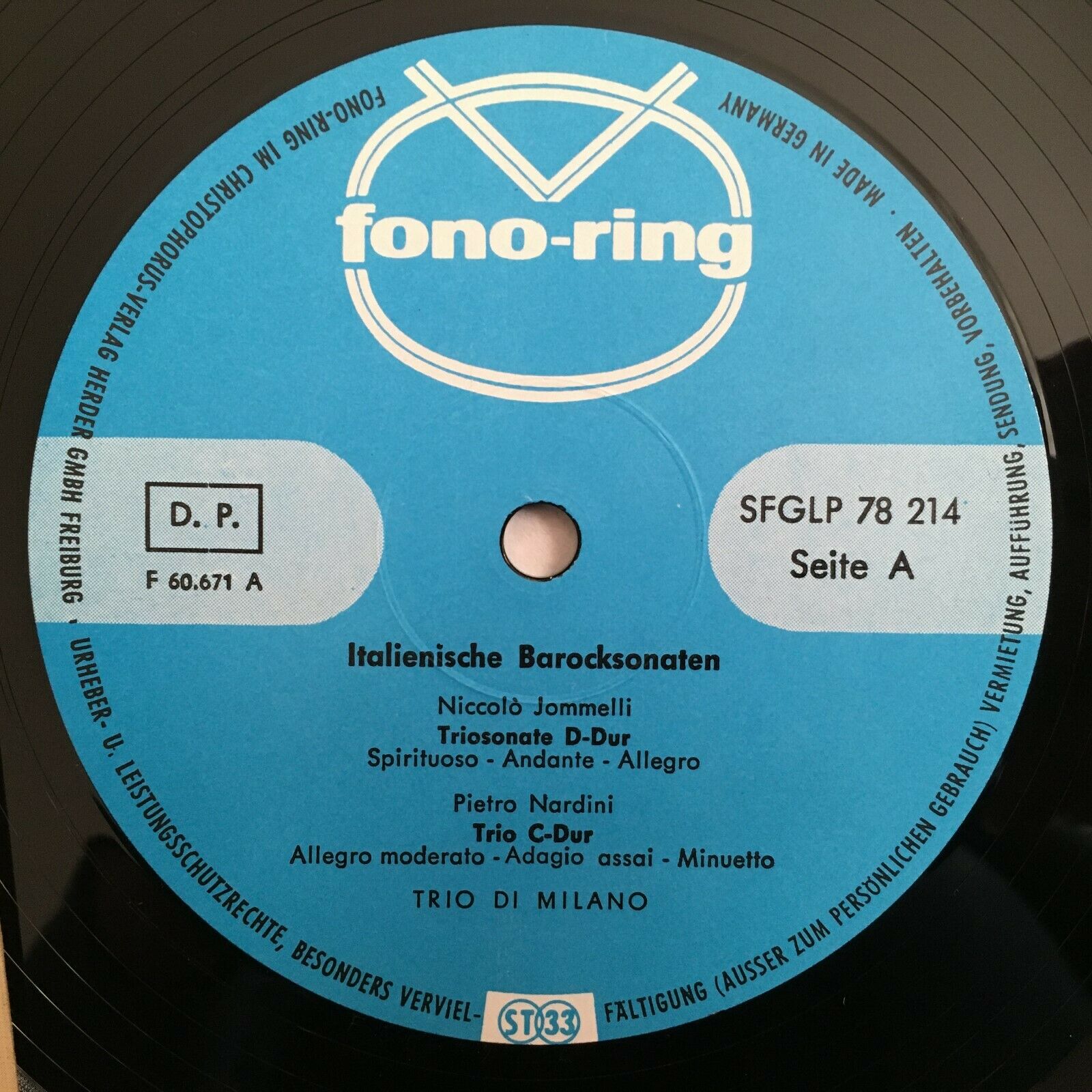 X618 Trio Di Milano Italian Baroque Sonatas Nardini Fonoring SFGLP 78 214 Stereo