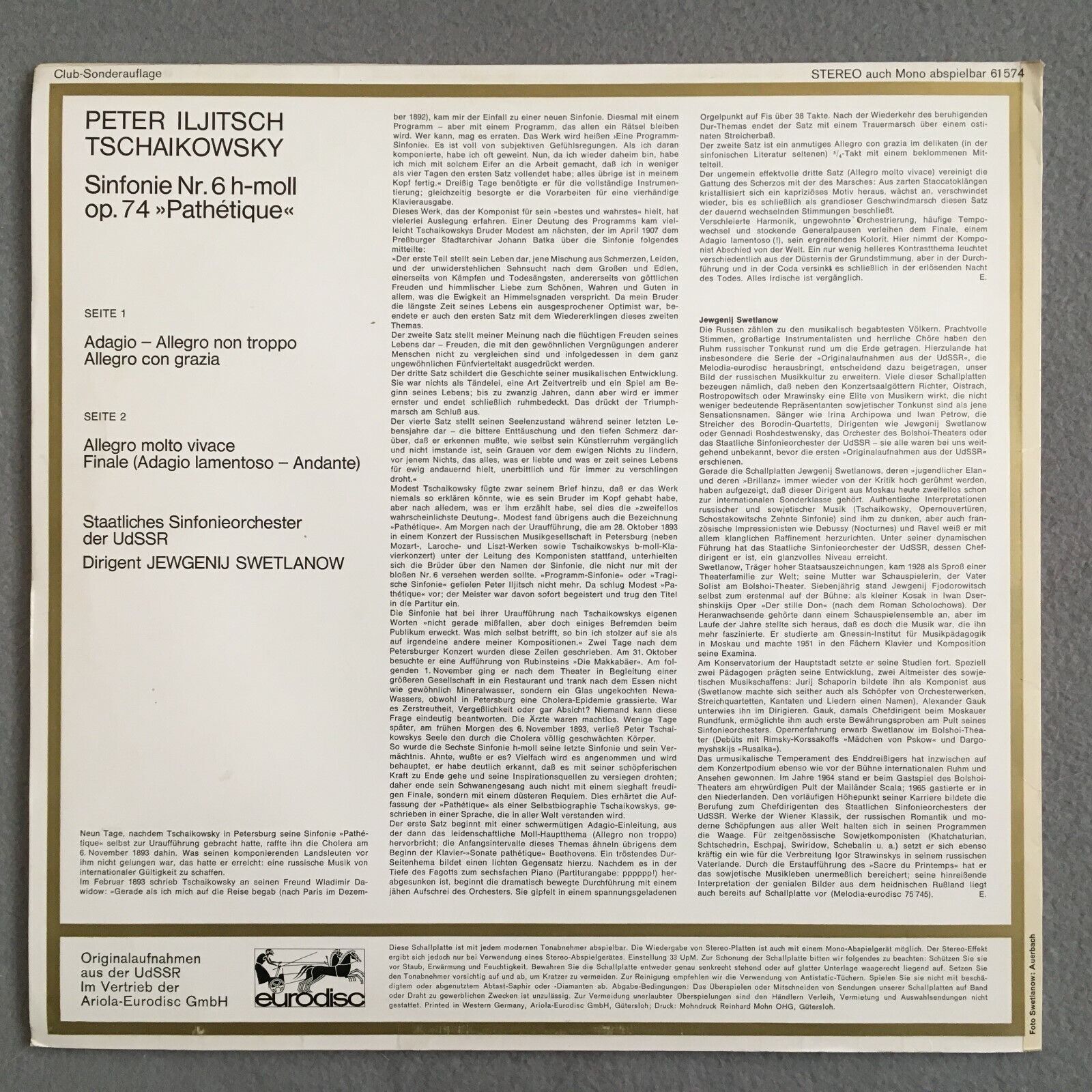 X621 Tchaikovsky Symphony No.6 Swetlanow Eurodisc 61 574 Stereo