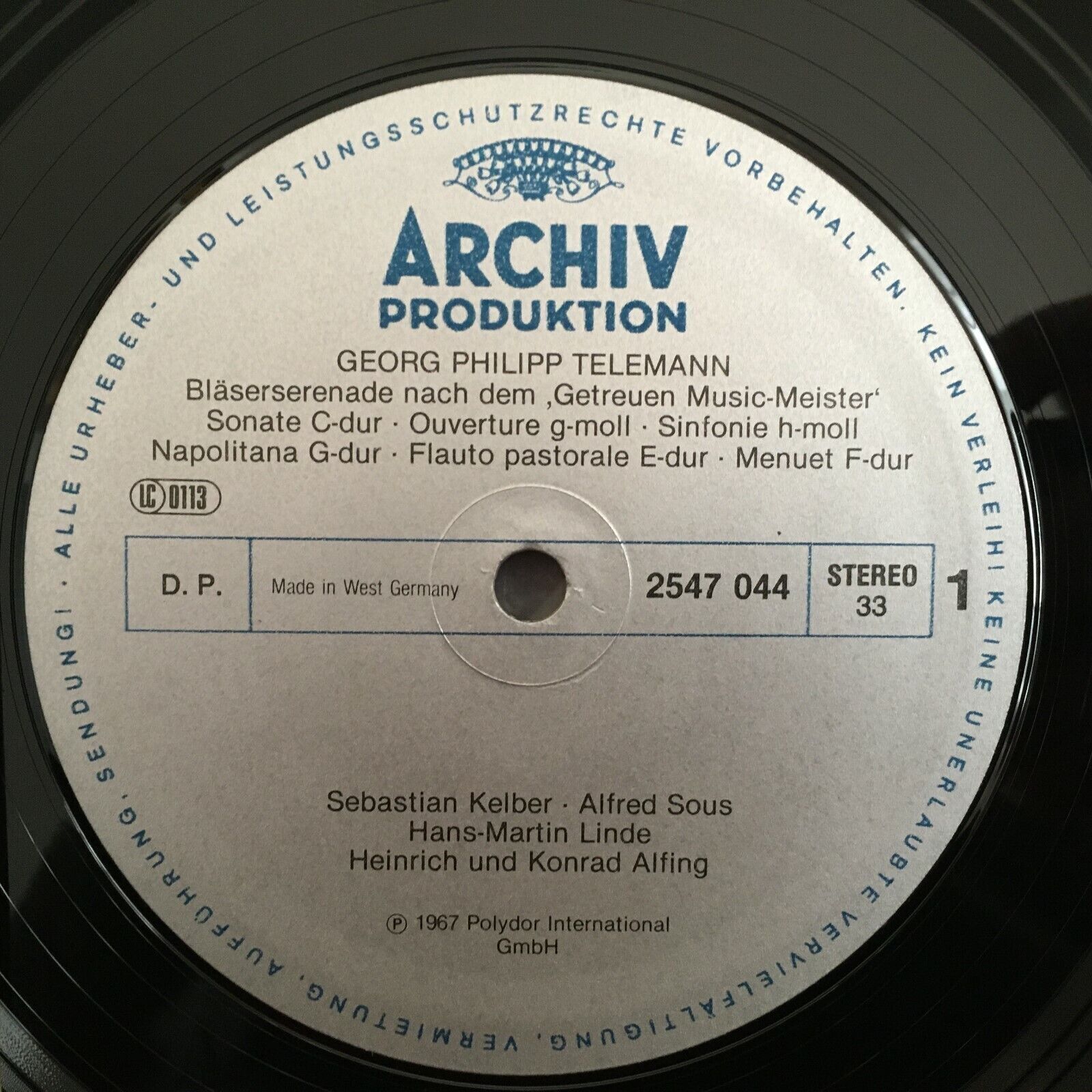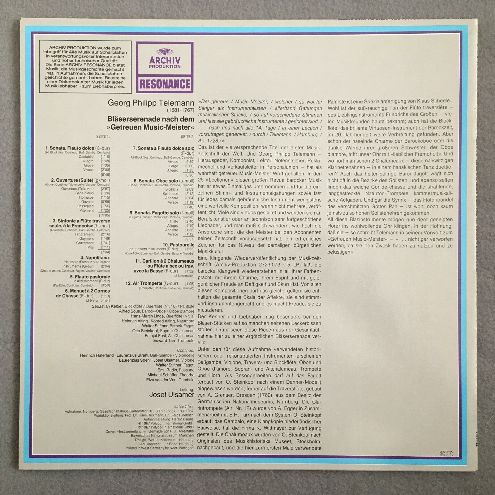 X648 Telemann Wind Serenade Kelber Ulsamer Archiv DGG 2547 044 Stereo