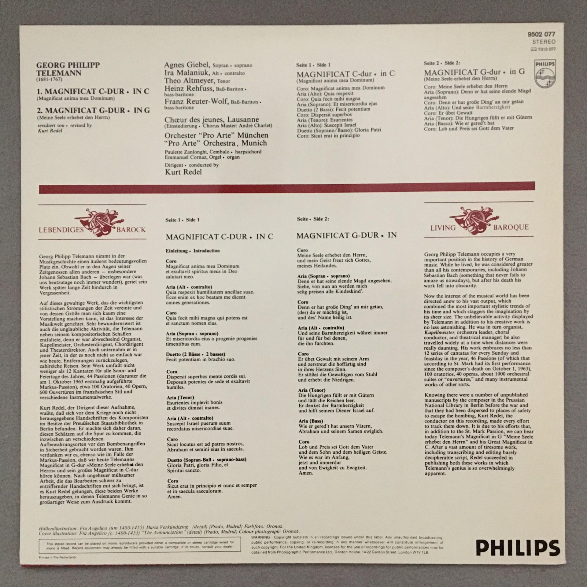 R287 Telemann Magnificat Giebel Altmeyer Redel Philips 9502 077 Stereo