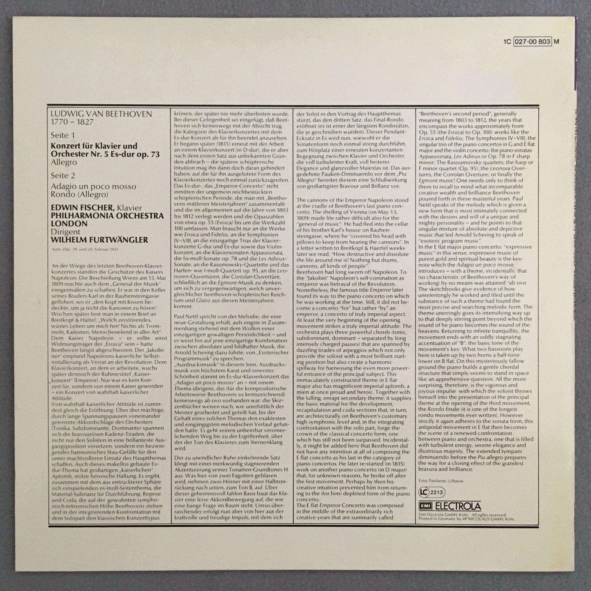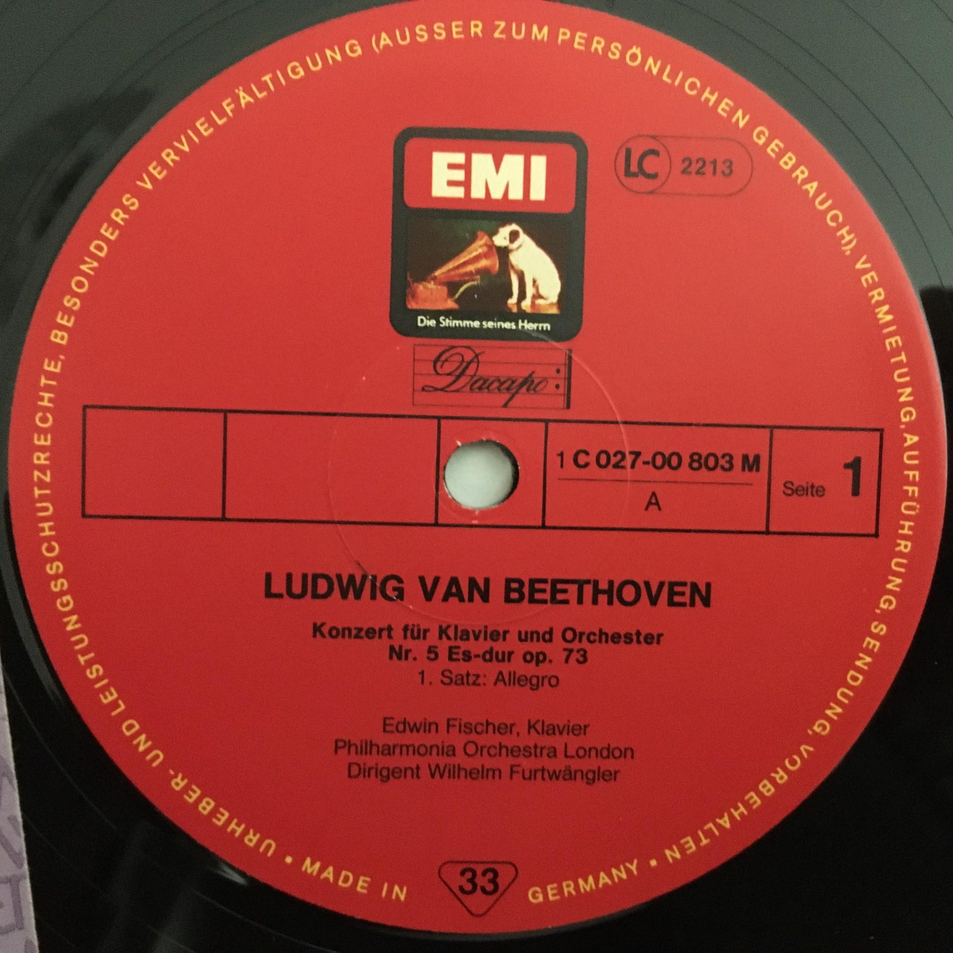 R288 Beethoven Piano Concerto No.5 Fischer Furtwangler LPO EMI 1C 027-00 803 M