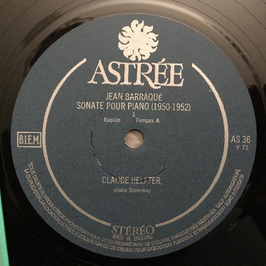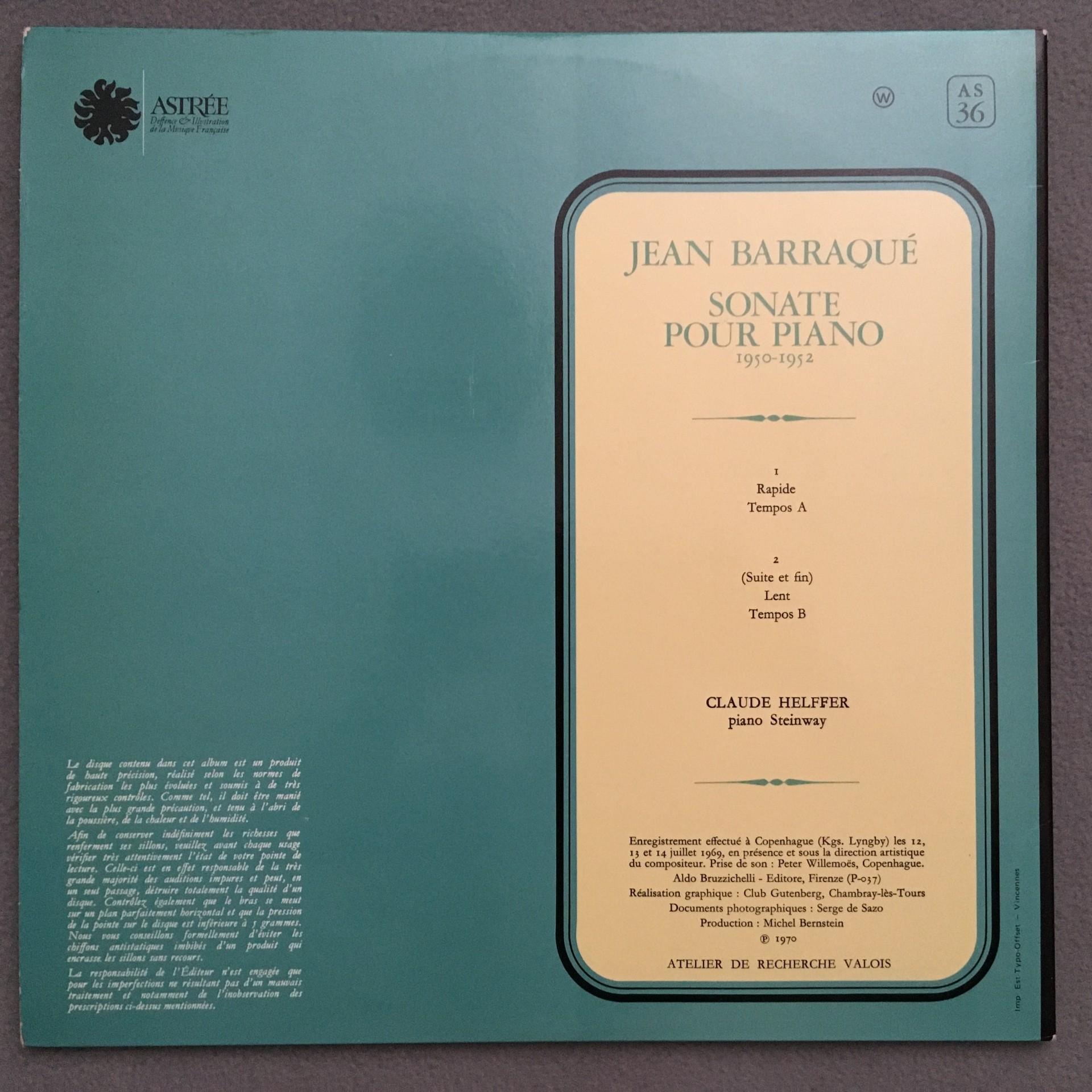 N036 Barraque Piano Sonata 1950-1952 Helffer Astree AS 36 Stereo