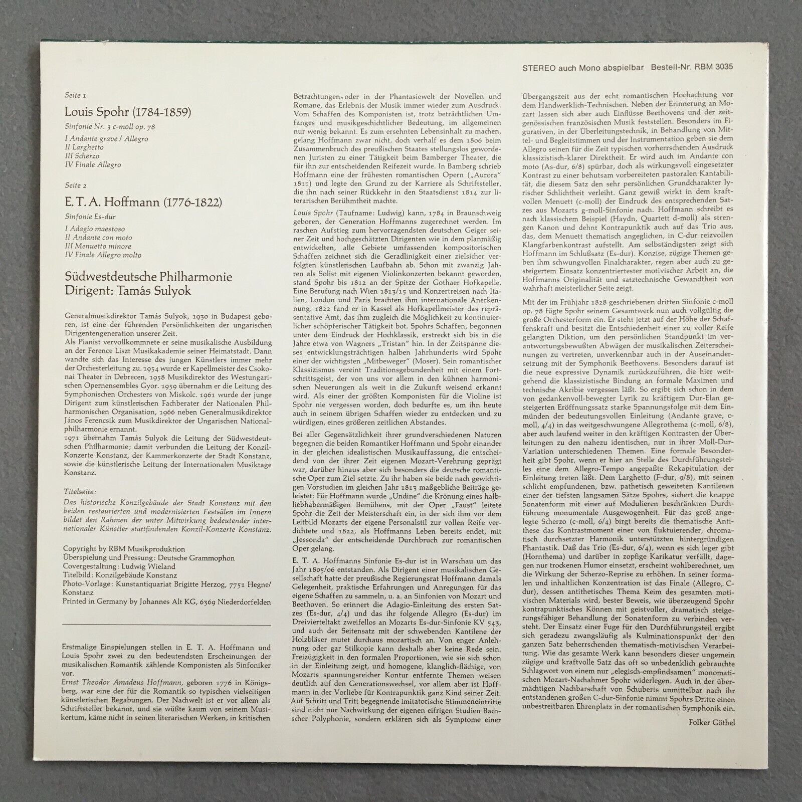 X739 Spohr/Hoffmann Symphonies Sulyok RBM Records RBM 3035 Stereo
