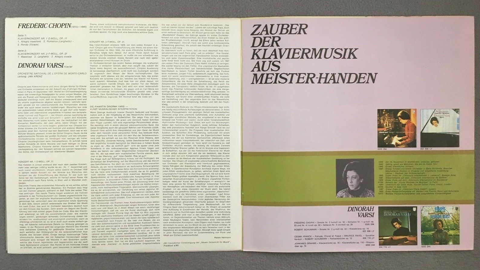 X844 Chopin Piano Concertos No.1 & No.2 Varsi Krenz Philips 6833 067 Stereo