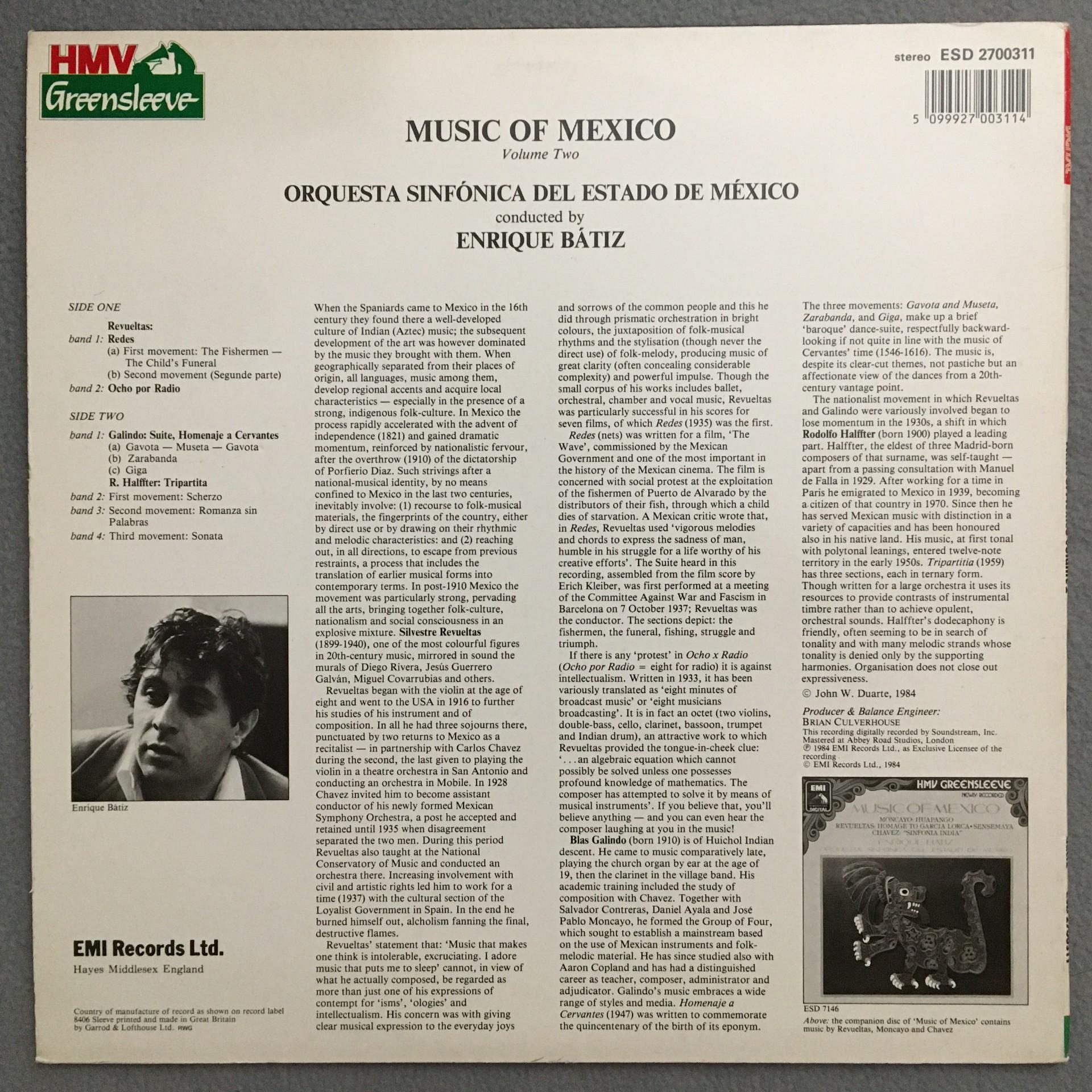 N046 Music of Mexico Vol. 2 Batiz HMV Greensleeve ESD 2700311 Digital Stereo