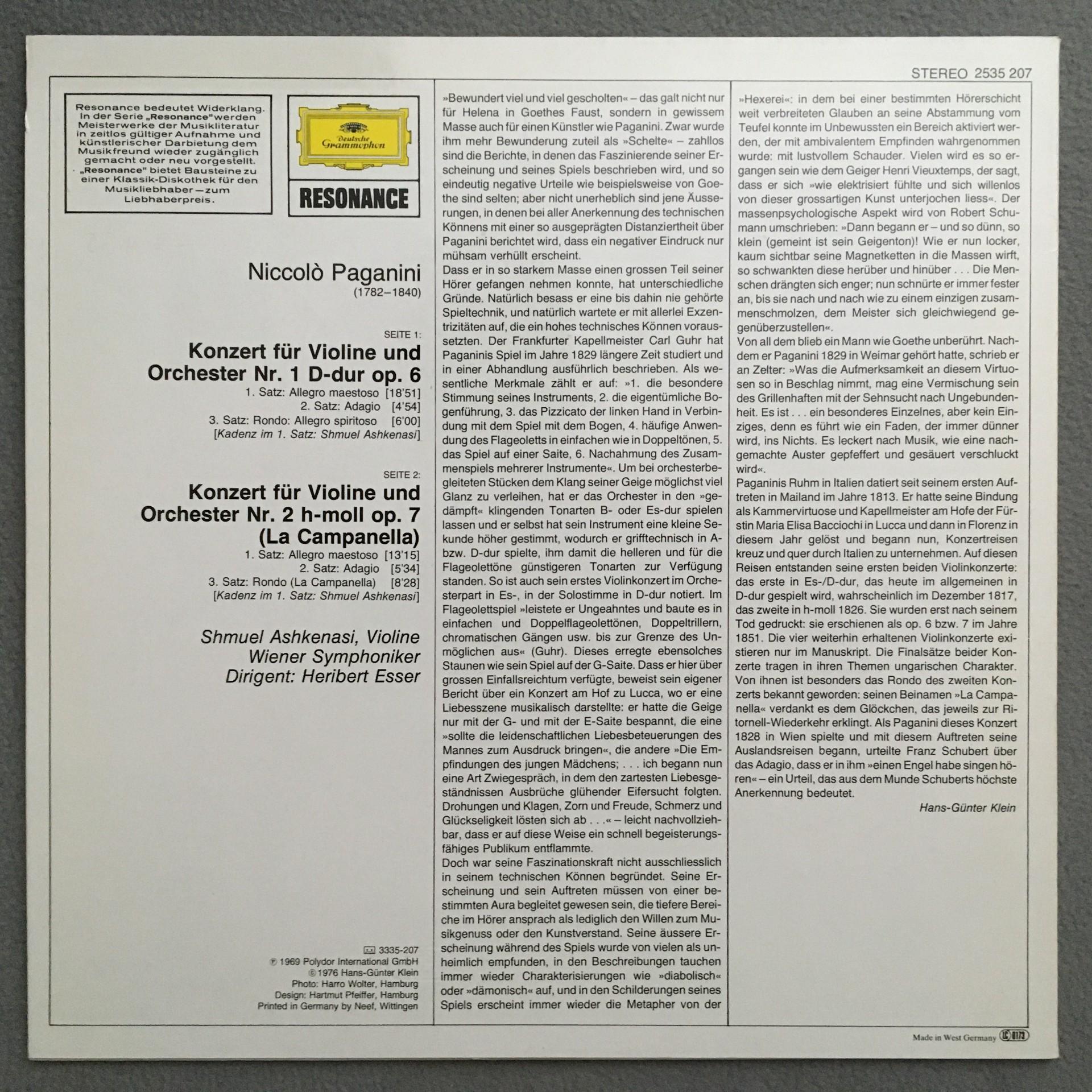 N049 Paganini Violin Concertos Ashkenasi Esser VSO DGG 2535 207 Stereo