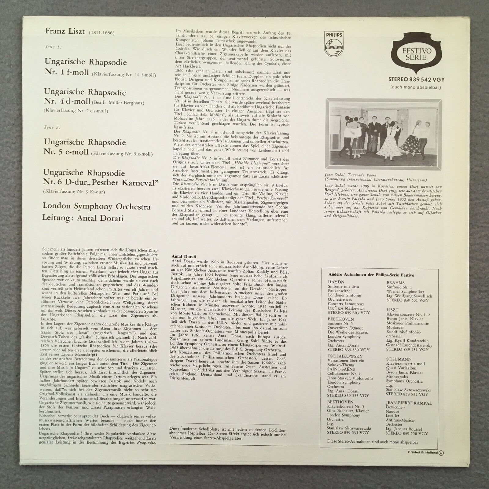 X975 Liszt Hungarian Rhapsodies Dorati LSO Philips 839 542 VGY Stereo
