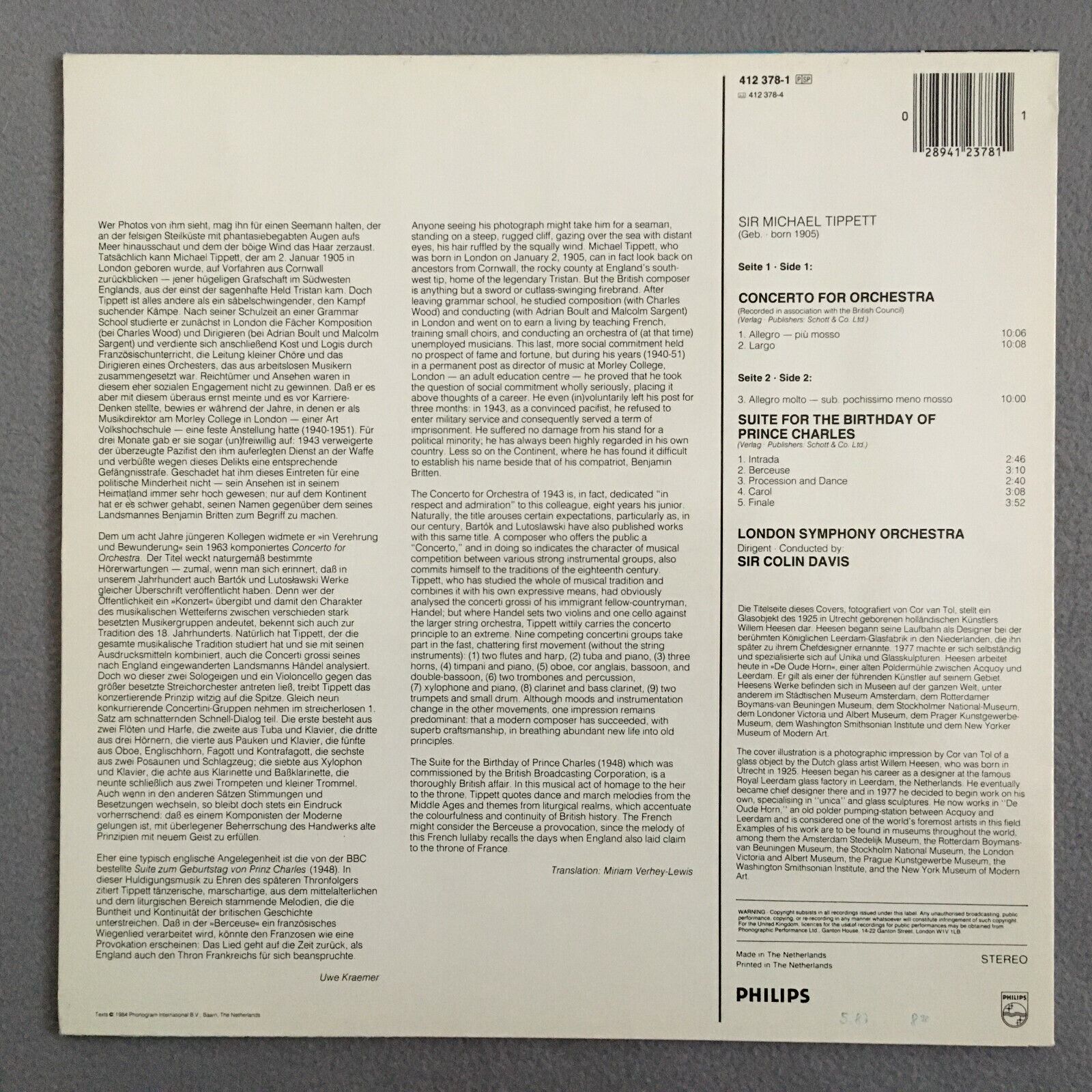 Z129 Tippett Concerto Birthday Suite Prinz Charles Davis Philips 412 378-1 St