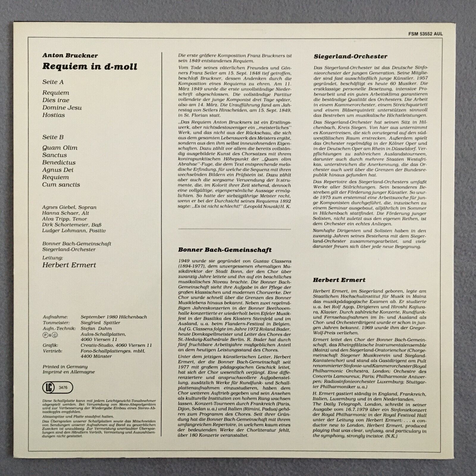 Z132 Bruckner Requiem Giebel Schaer Tripp Ermert Aulos FSM 53552 AUL Stereo
