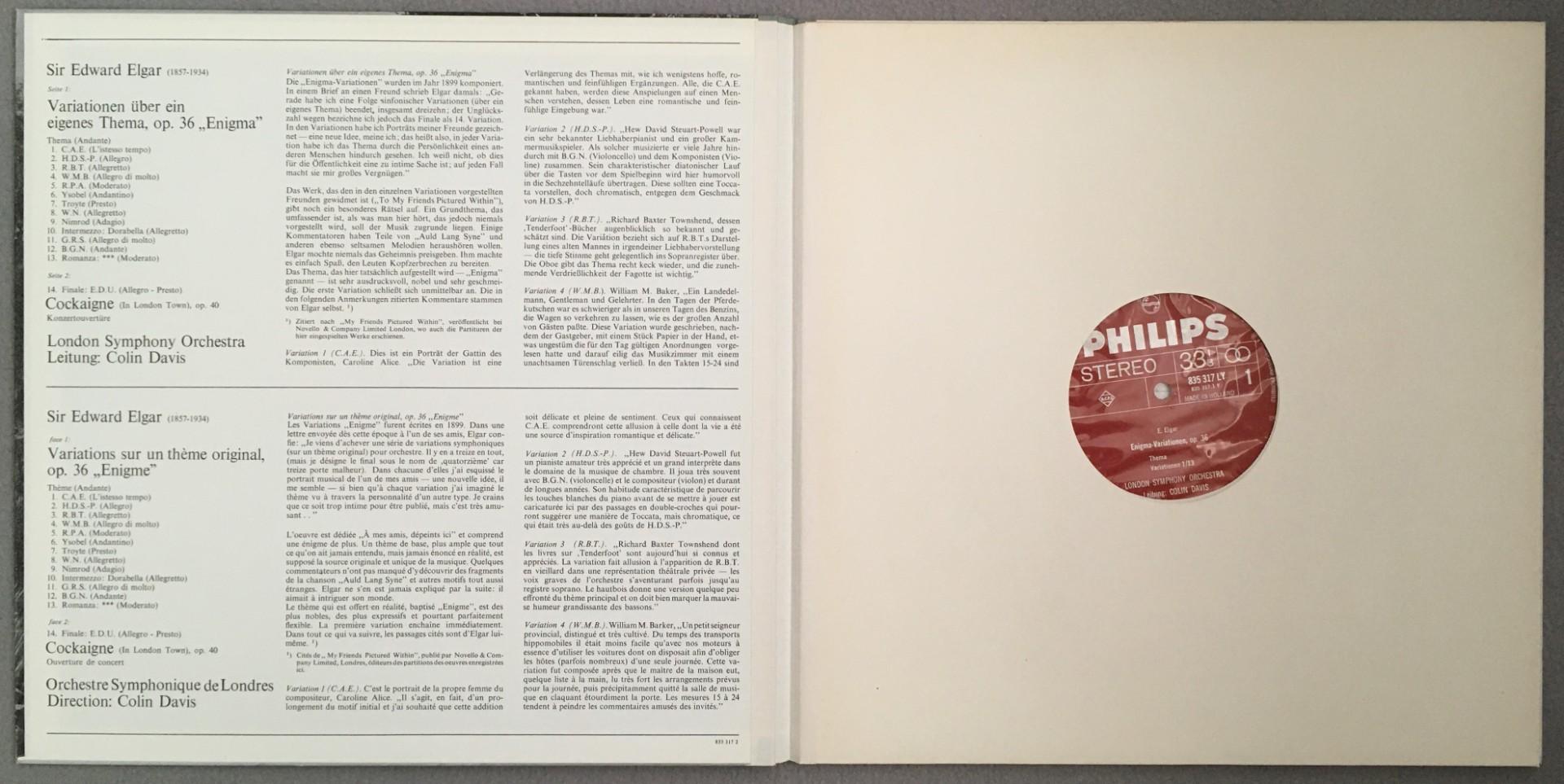 Q027 Elgar Enigma Variations Overture Davis Philips 835 317 LY Stereo