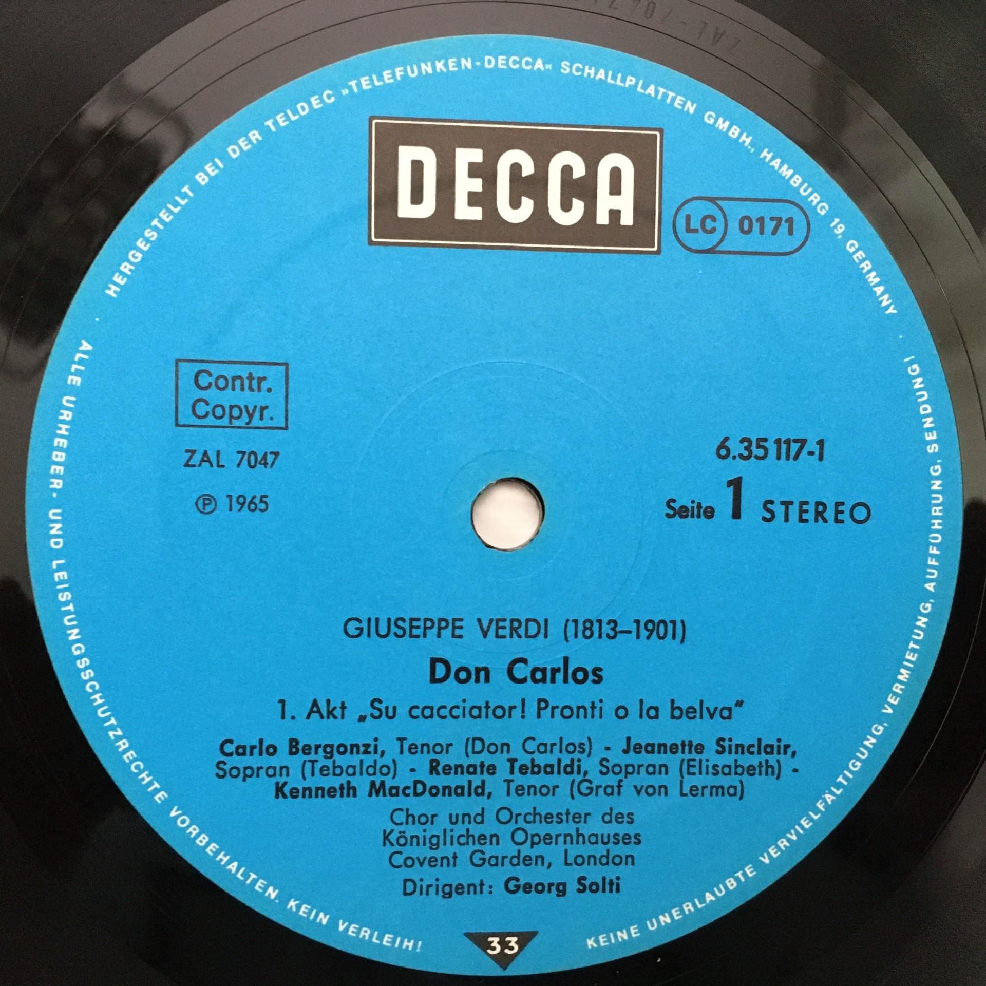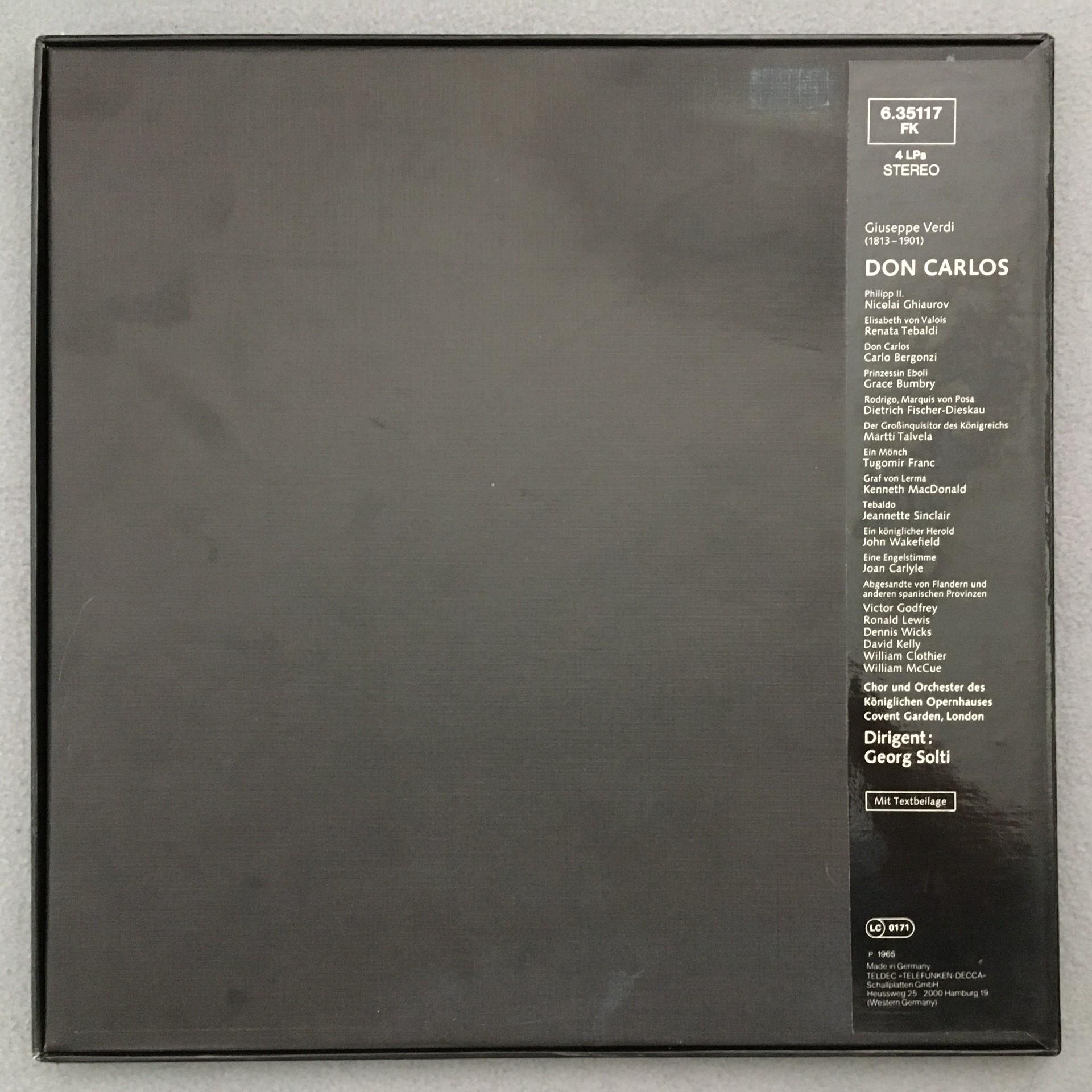 E499 Verdi Don Carlos Fischer-Dieskau Tebaldi Solti 4LP DECCA 6.35117 FK Stereo