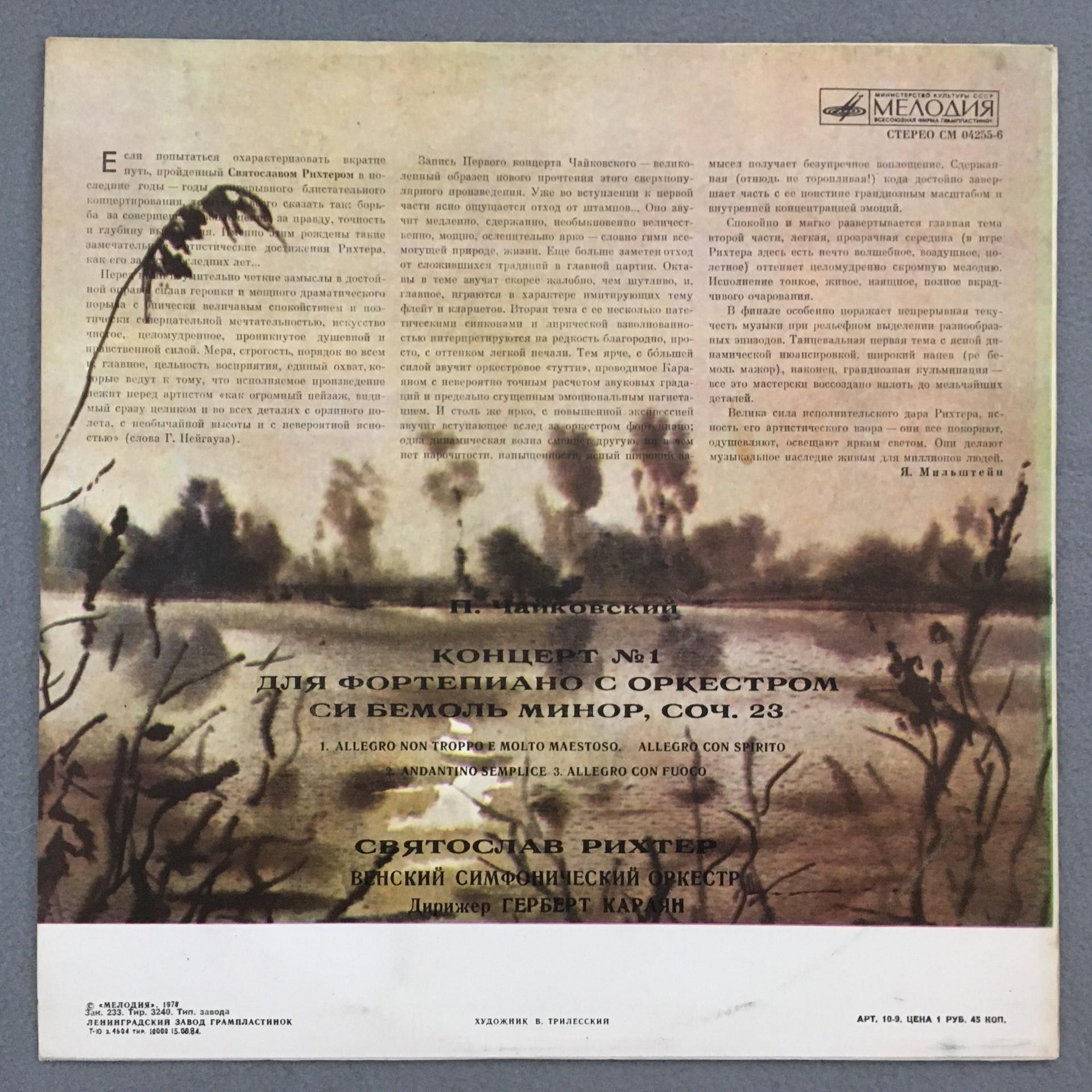 U115 Tchaikovsky Piano Concerto Richter Karajan Melodiya CM 04255-56 Stereo