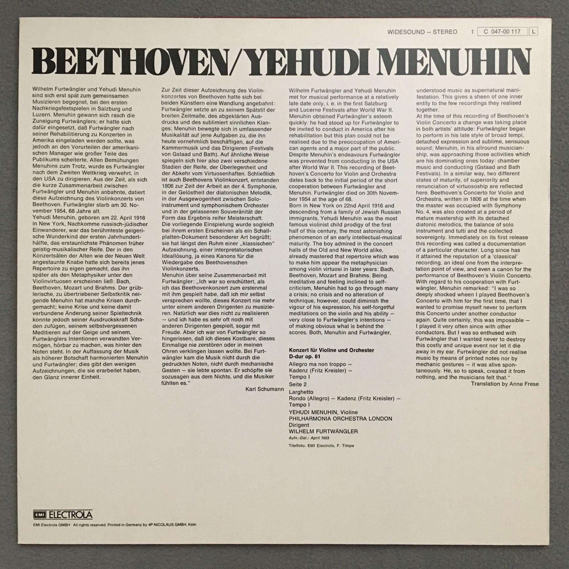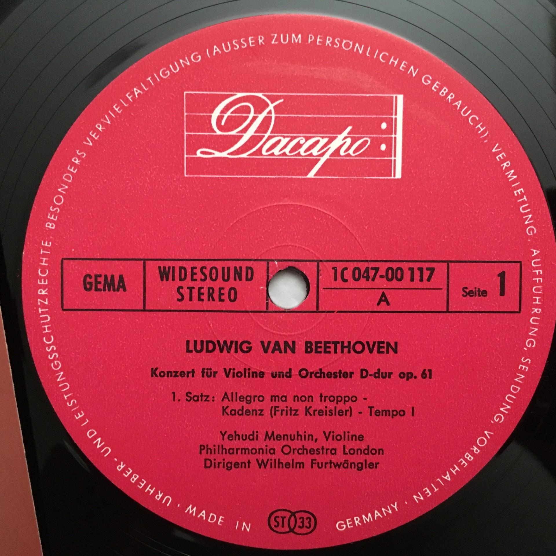 N056 Beethoven Violin Concerto Menuhin Furtwängler Dacapo 1 C 047-00 117 Stereo