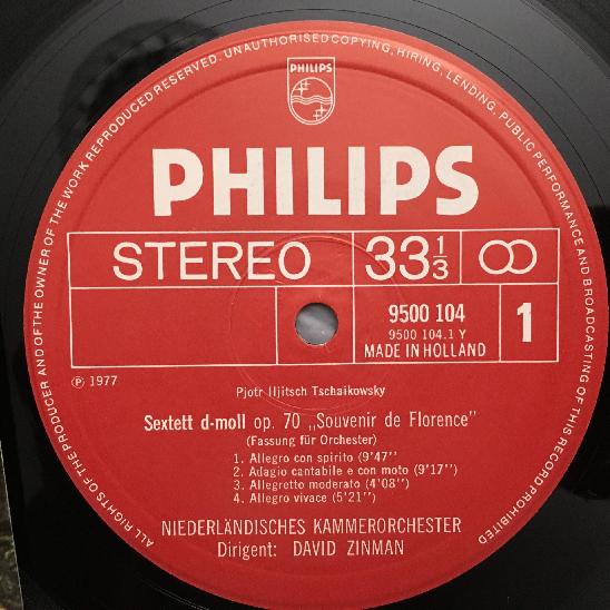 N057 Tchaikovsky Sextet Verdi String Quartet Zinman Philips 9500 104 Stereo