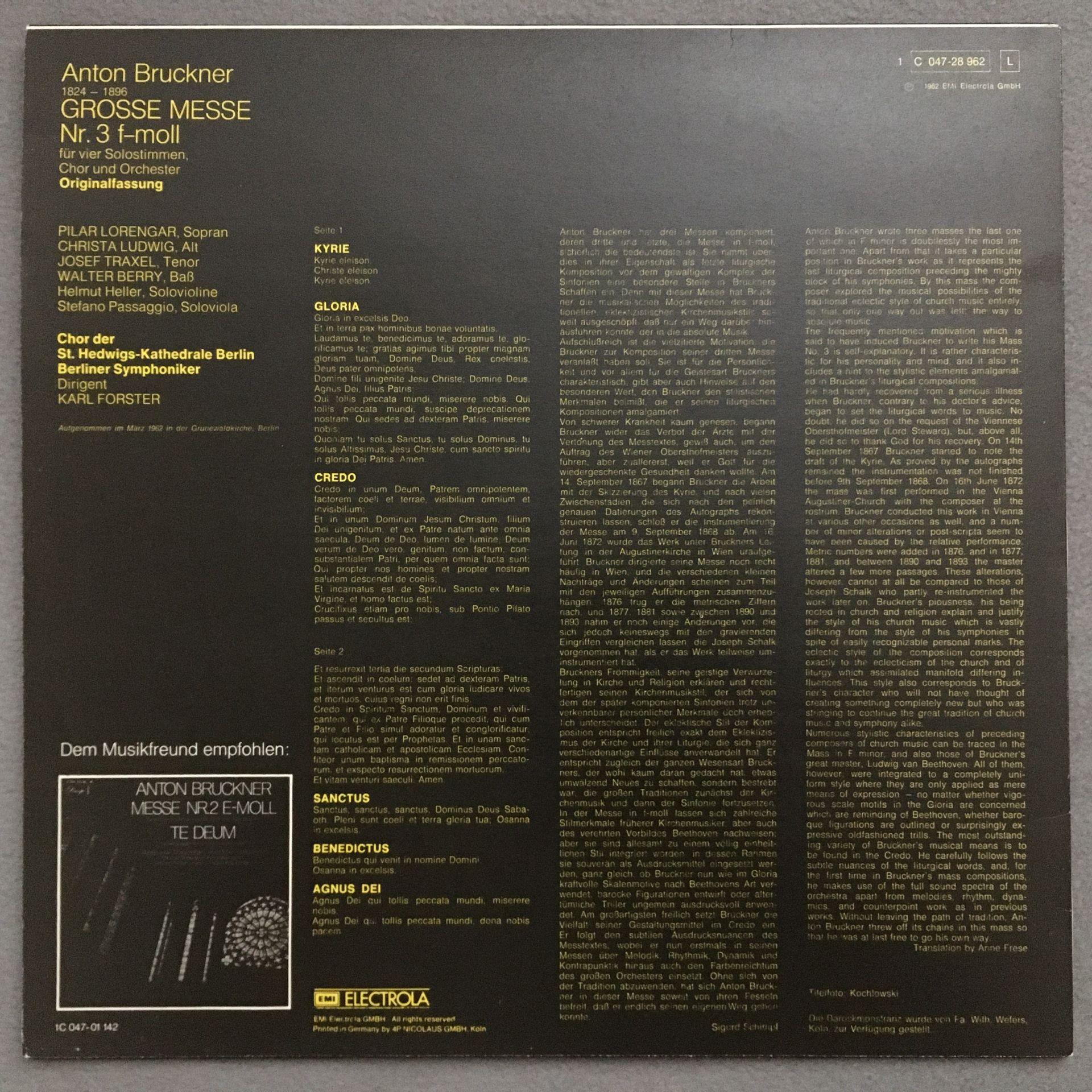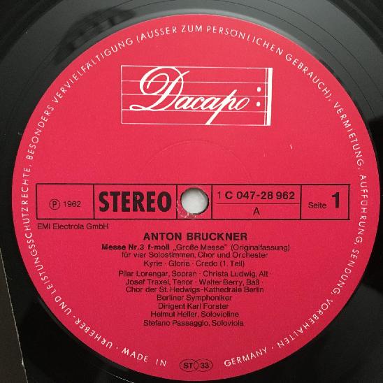N069 Bruckner Mass No.3 Ludwig Lorengar Forster Dacapo 1 C 047-28 962 Stereo