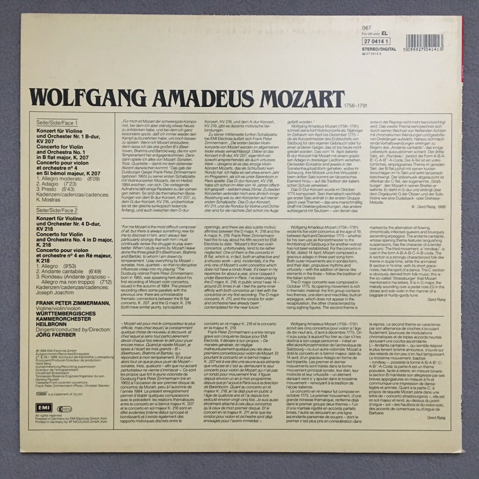 R331 Mozart Violin Concertos Zimmermann Faerber EMI 067 27 0414 1 Digital Stereo