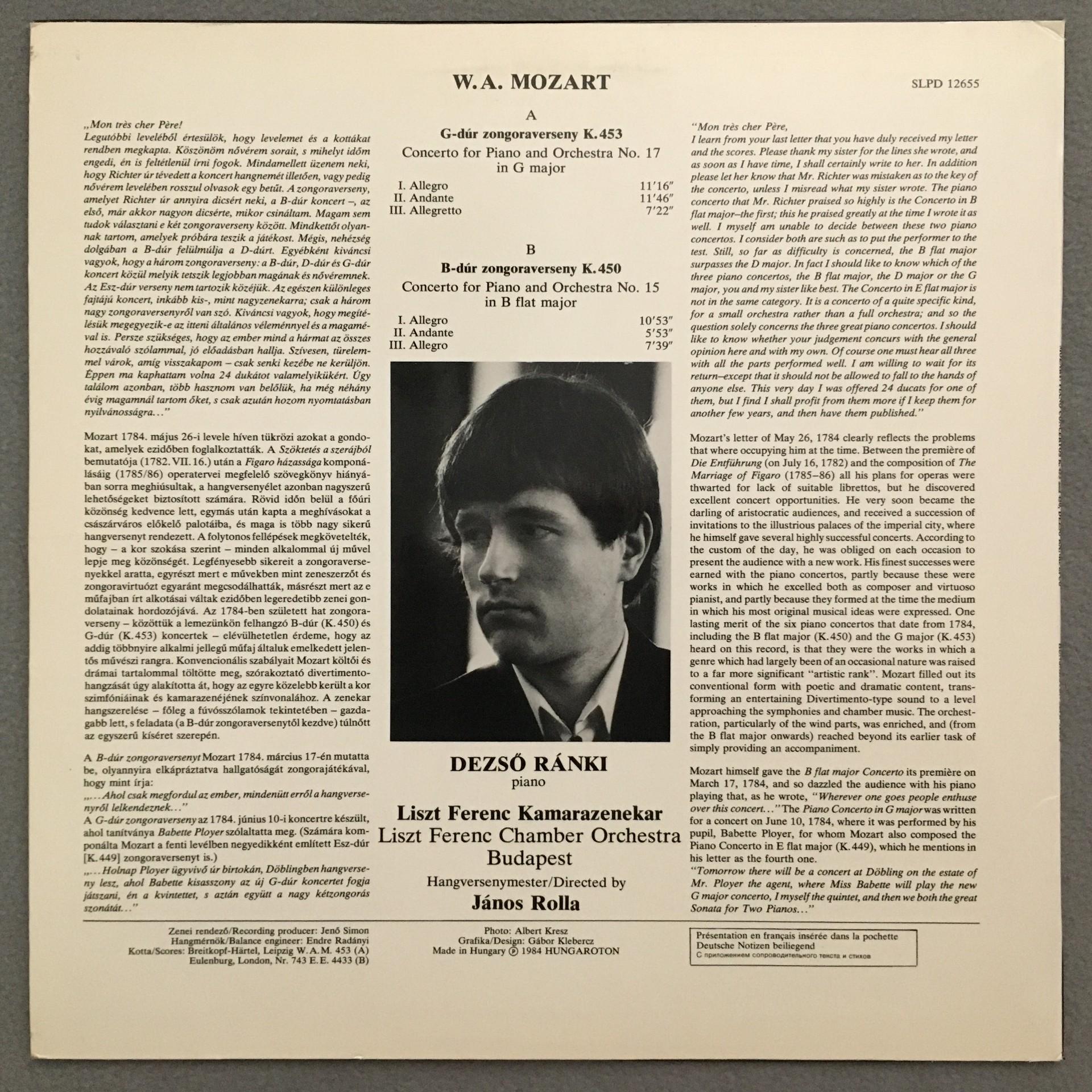 N072 Mozart Piano Concertos Ranki Rolla Hungaroton SLPD 12655 Digital Stereo