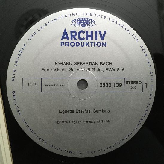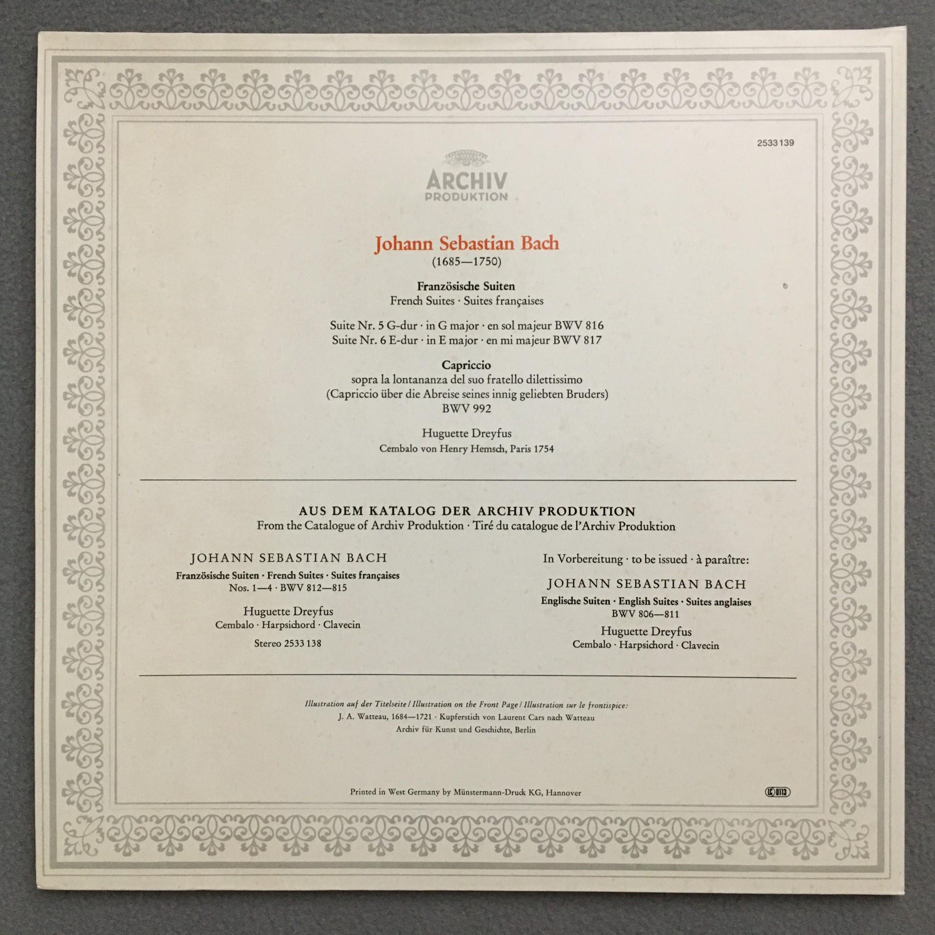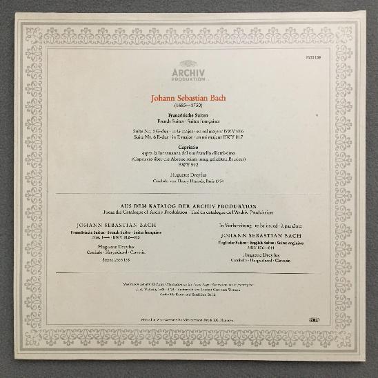 N081 Bach French Suites Dreyfus Harpsichord DGG Archiv 2533 139 Stereo