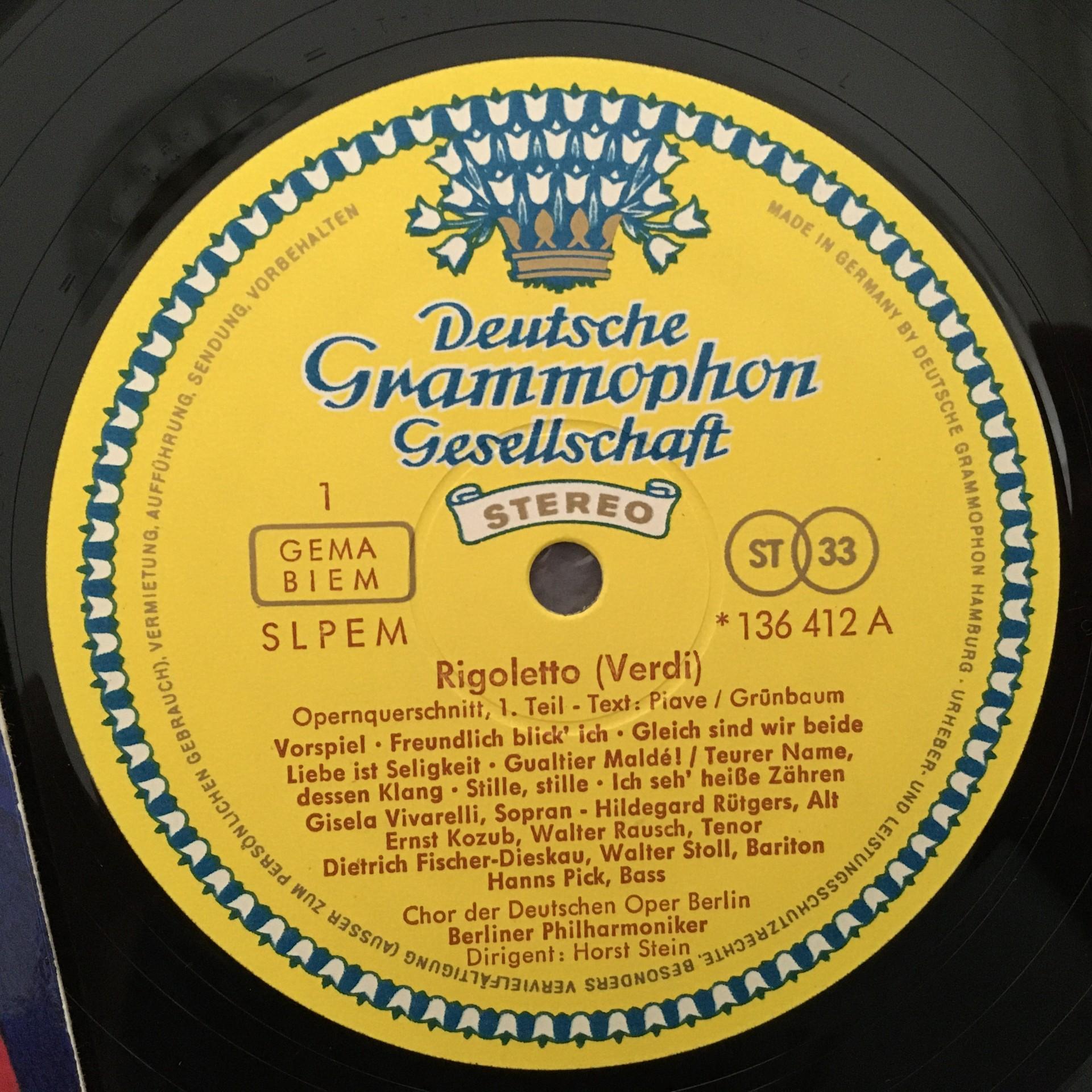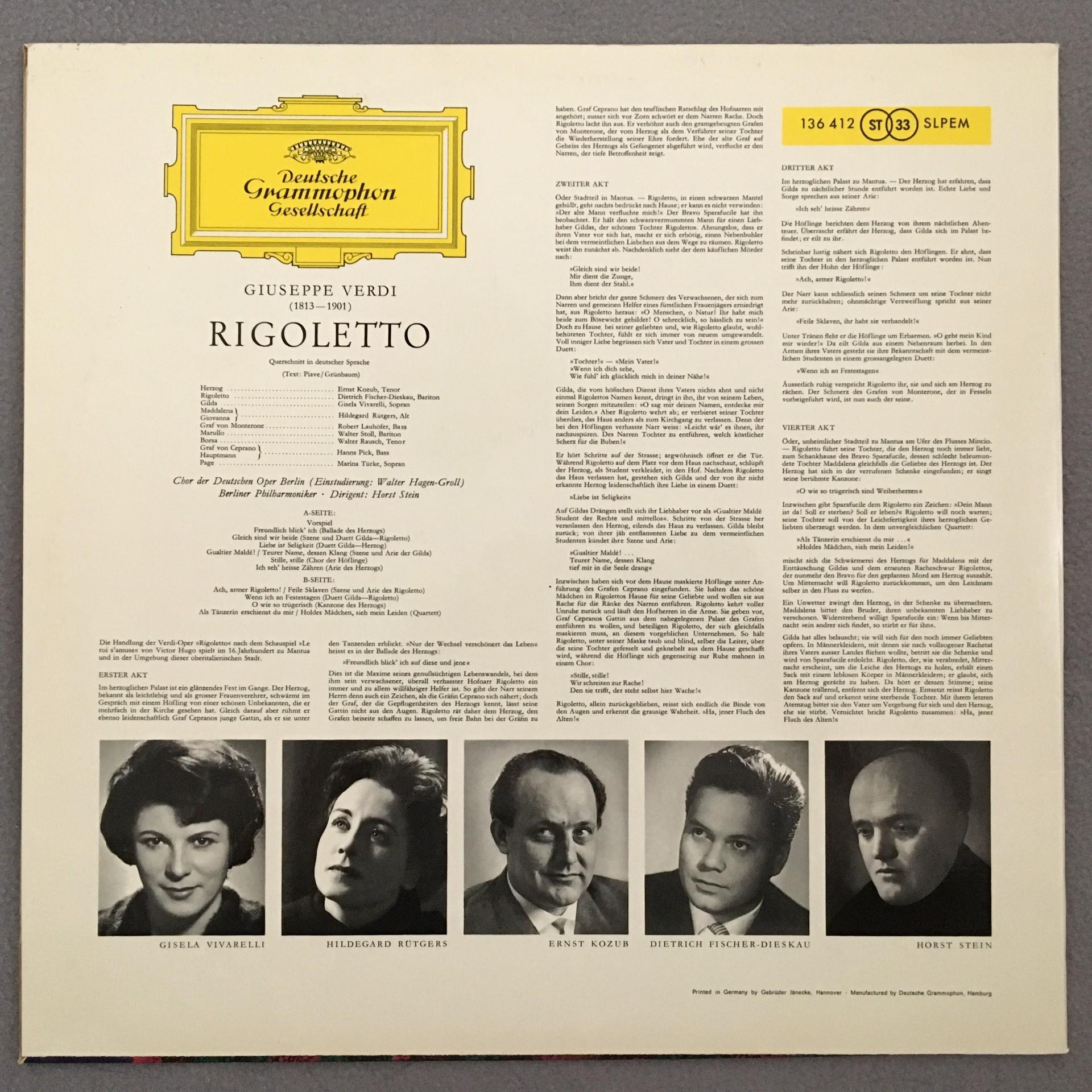 U125 Verdi Rigoletto Vivarelli Kozub Fischer-Dieskau Stein DGG 136 412 St Tulip