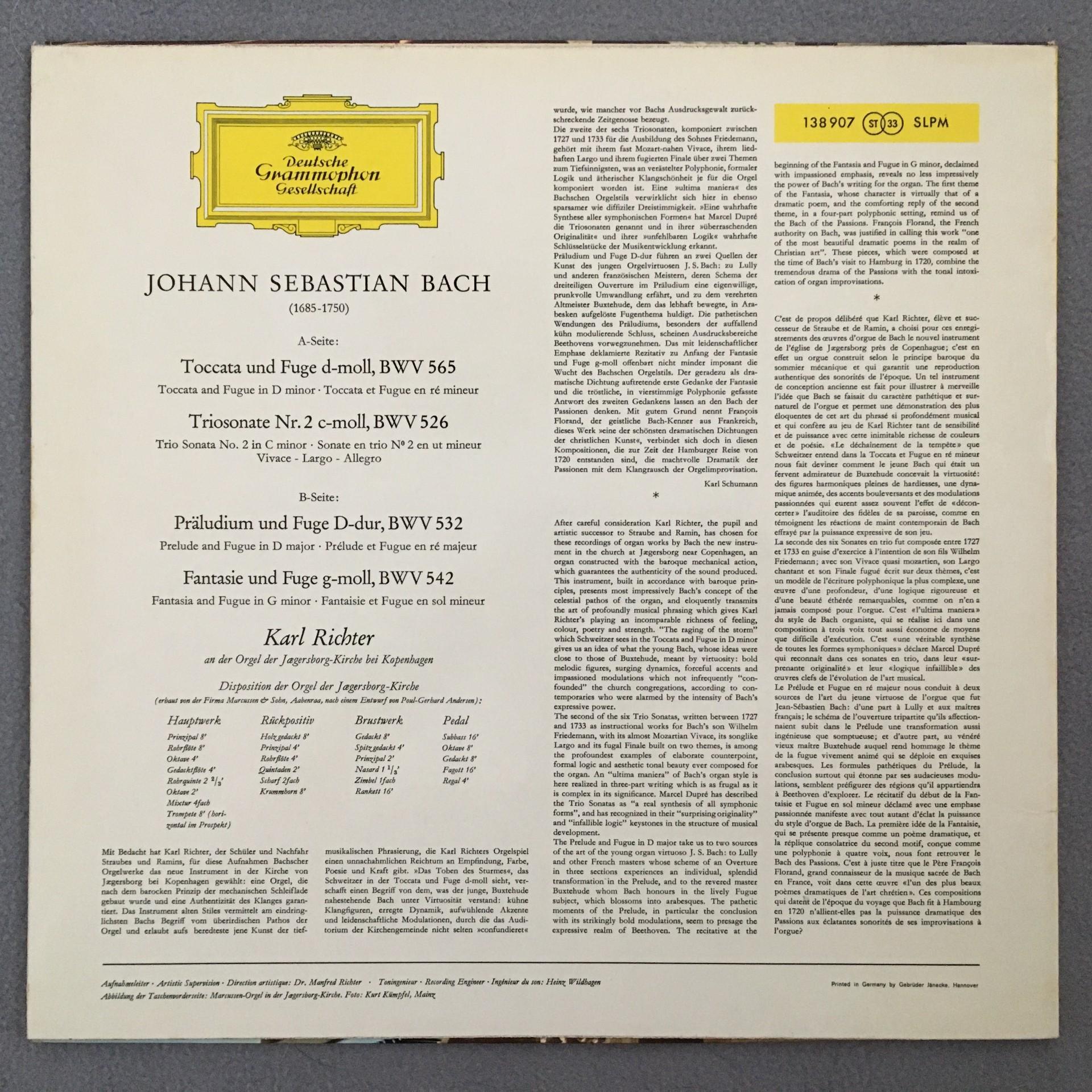 U126 Bach Toccata & Fugue Trisonata Richter DGG 138 907 SLPM Stereo