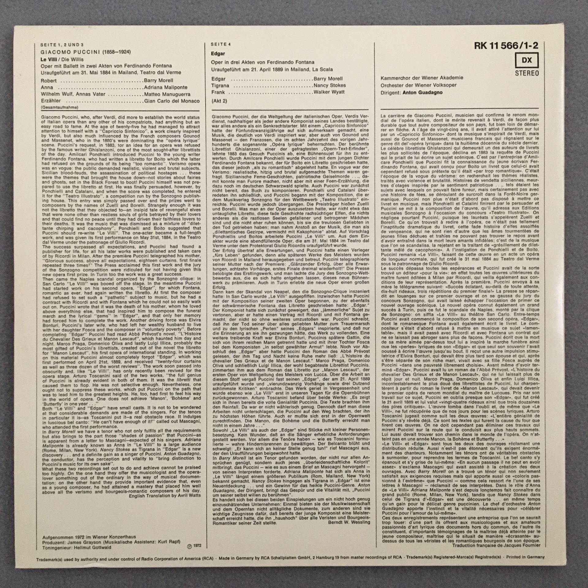 U130 Puccini Le Villi Edgar Morell Wyatt Guadagno 2LP RCA RK 11 566/1-2 Stereo