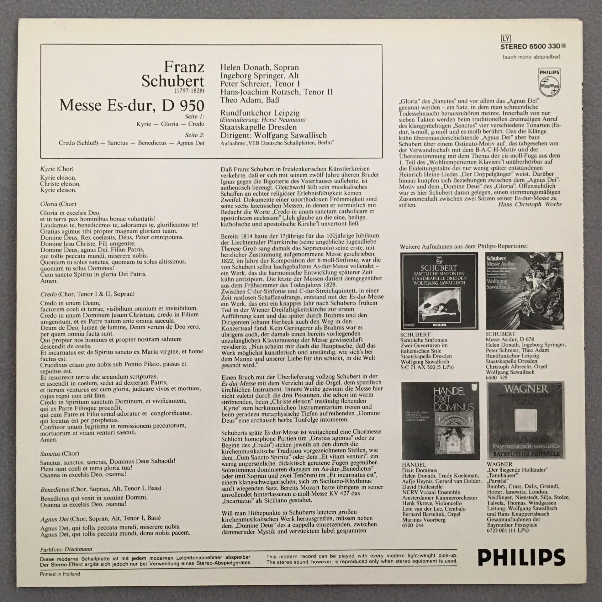 U131 Schubert Mass Donath Schreier Adam Sawallisch Philips 6500 330 Stereo