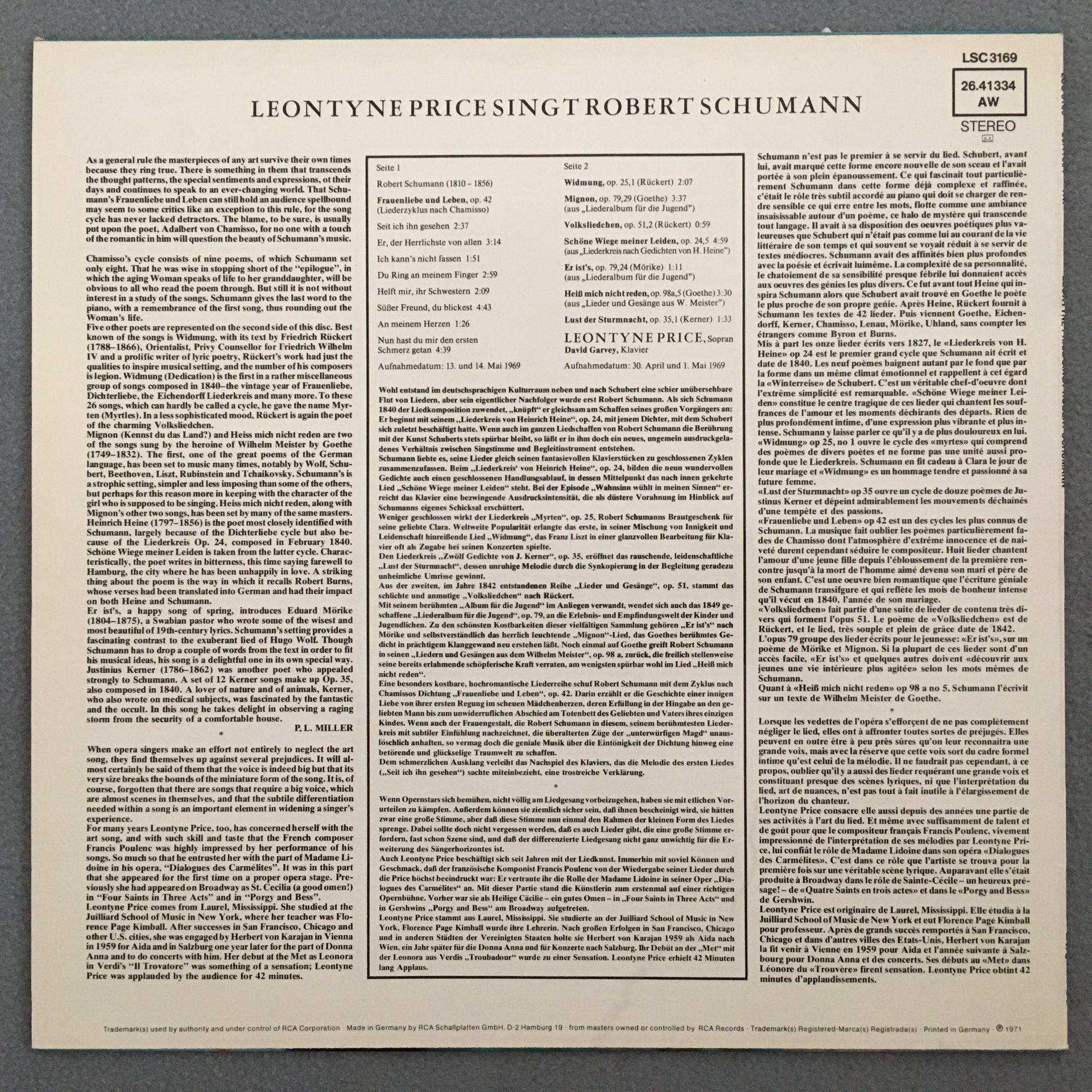 U133 Leontyne Price sings Schumann Garvey Piano RCA LSC-3169 Stereo