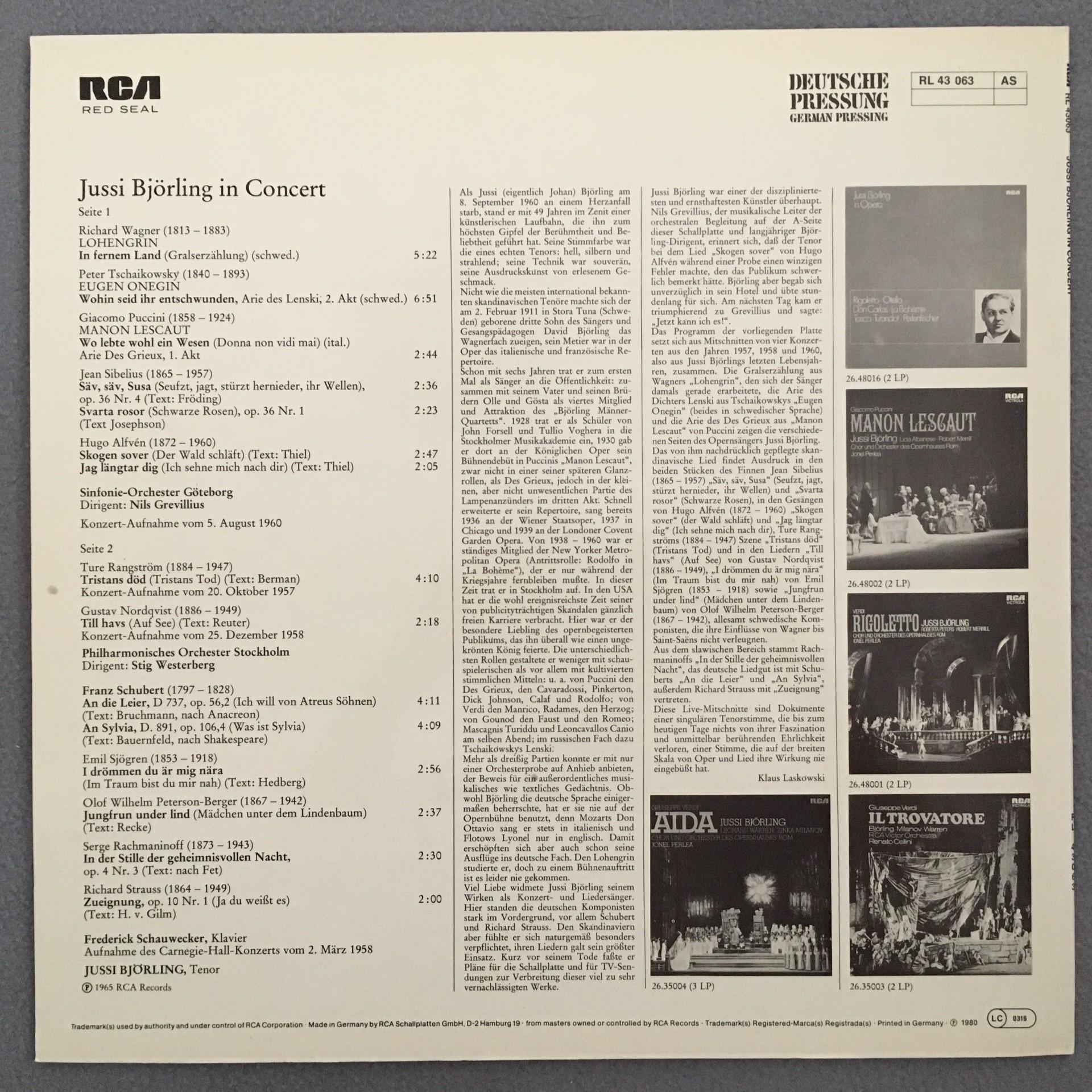 U135 Jussi Björling in Concert Schweden Carnegie Hall RCA RL 43 063