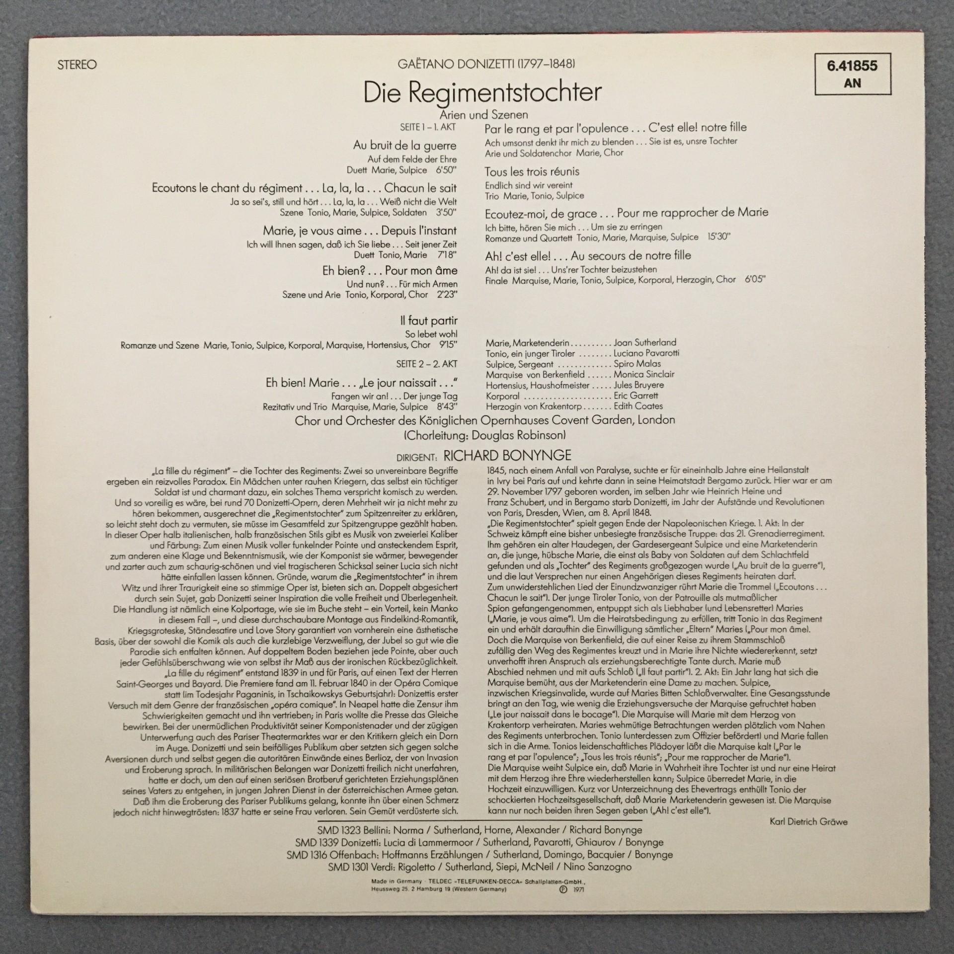 U139 Donizetti Regimentstochter Sutherland Bonynge DECCA 6.41855 AN Stereo