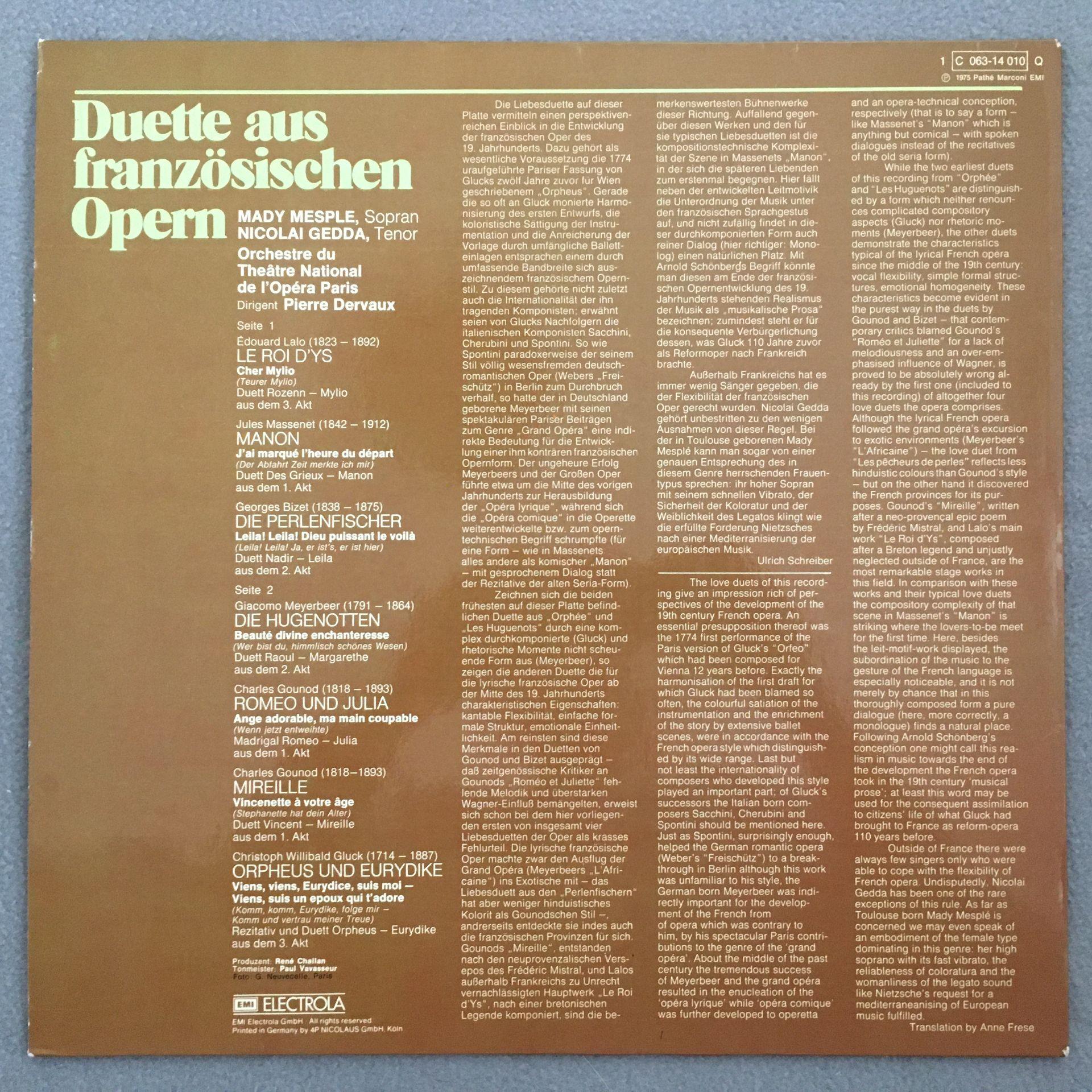 U141 Duets from French Operas Mesple Gedda EMI 1 C 063-14 010 Q Quadro
