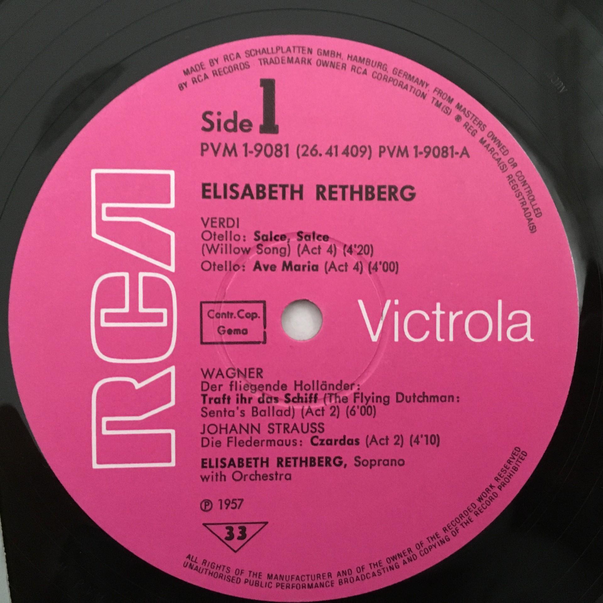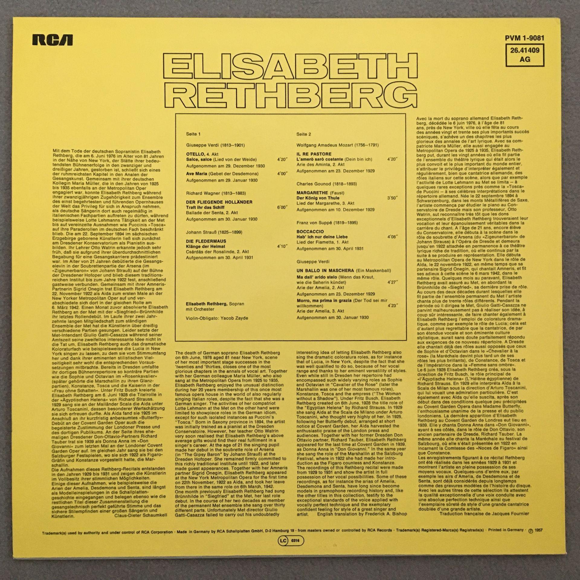 U142 Rethberg Arias & Songs Zayde Violin RCA 26.41 409 AG Stereo