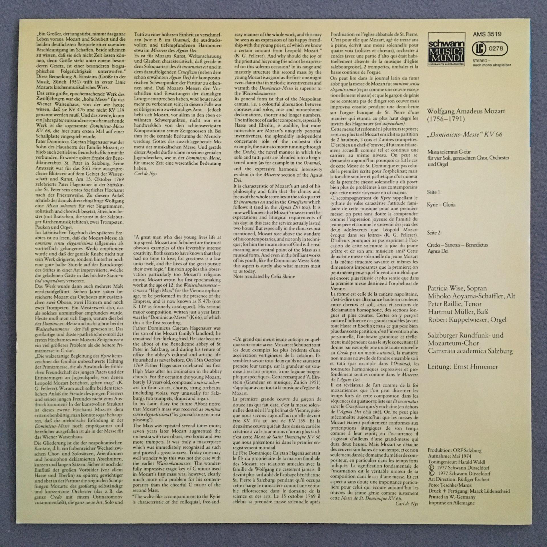 U146 Mozart Mass Wise Baillie Hinreiner Schwann AMS 3519 Stereo