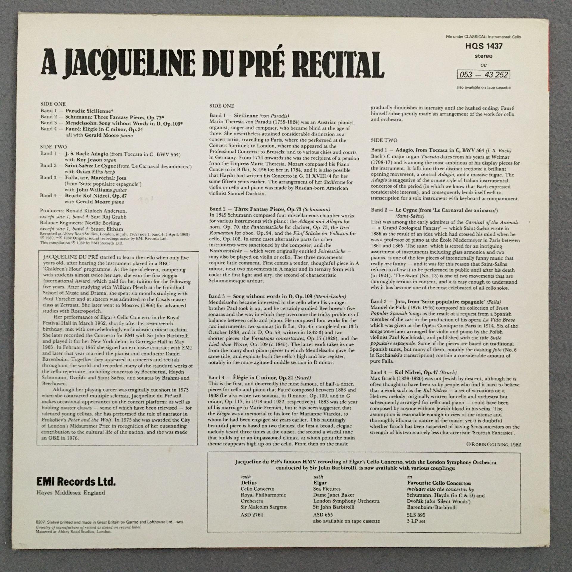 U154 A Jacqueline Du Pre Recital Moore Ellis EMI HQS 1437 Stereo