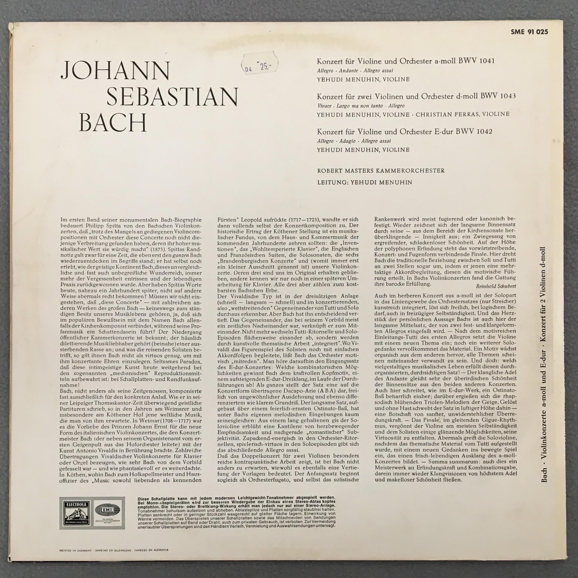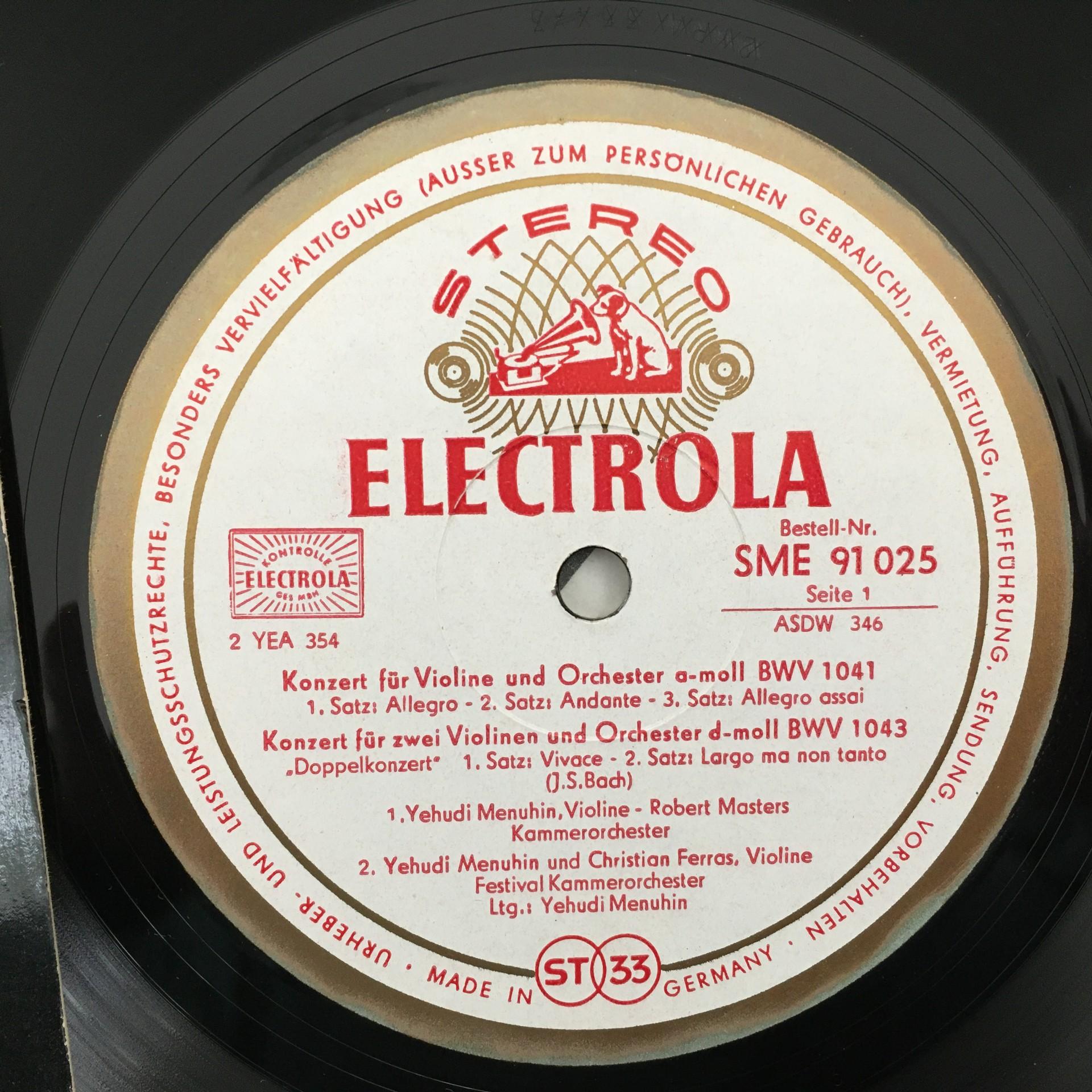 U165 Bach Violin Concerto Ferras Menuhin Electrola SME w/g 91 025 Stereo