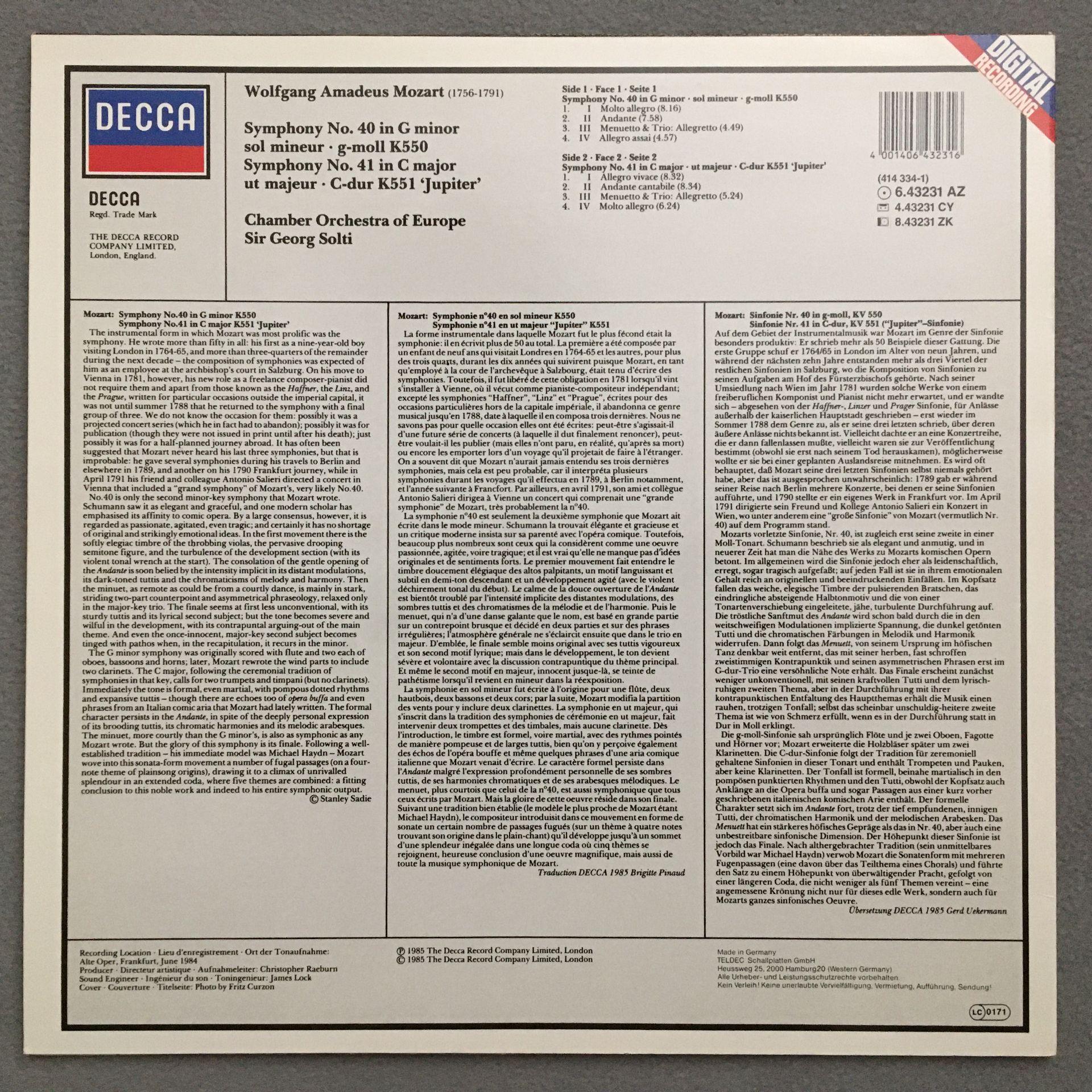 N095 Mozart Symphonies No.40 & No.41 Solti DECCA 6.43231 AZ Digital Stereo