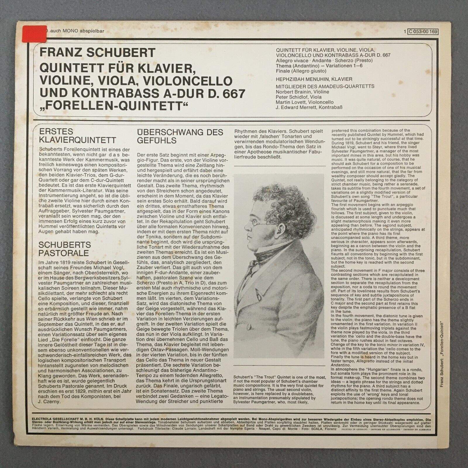 Z806 Schubert Piano Quintet Menuhin Amadeus Quartet EMI 1 C 053-00 169 Stereo