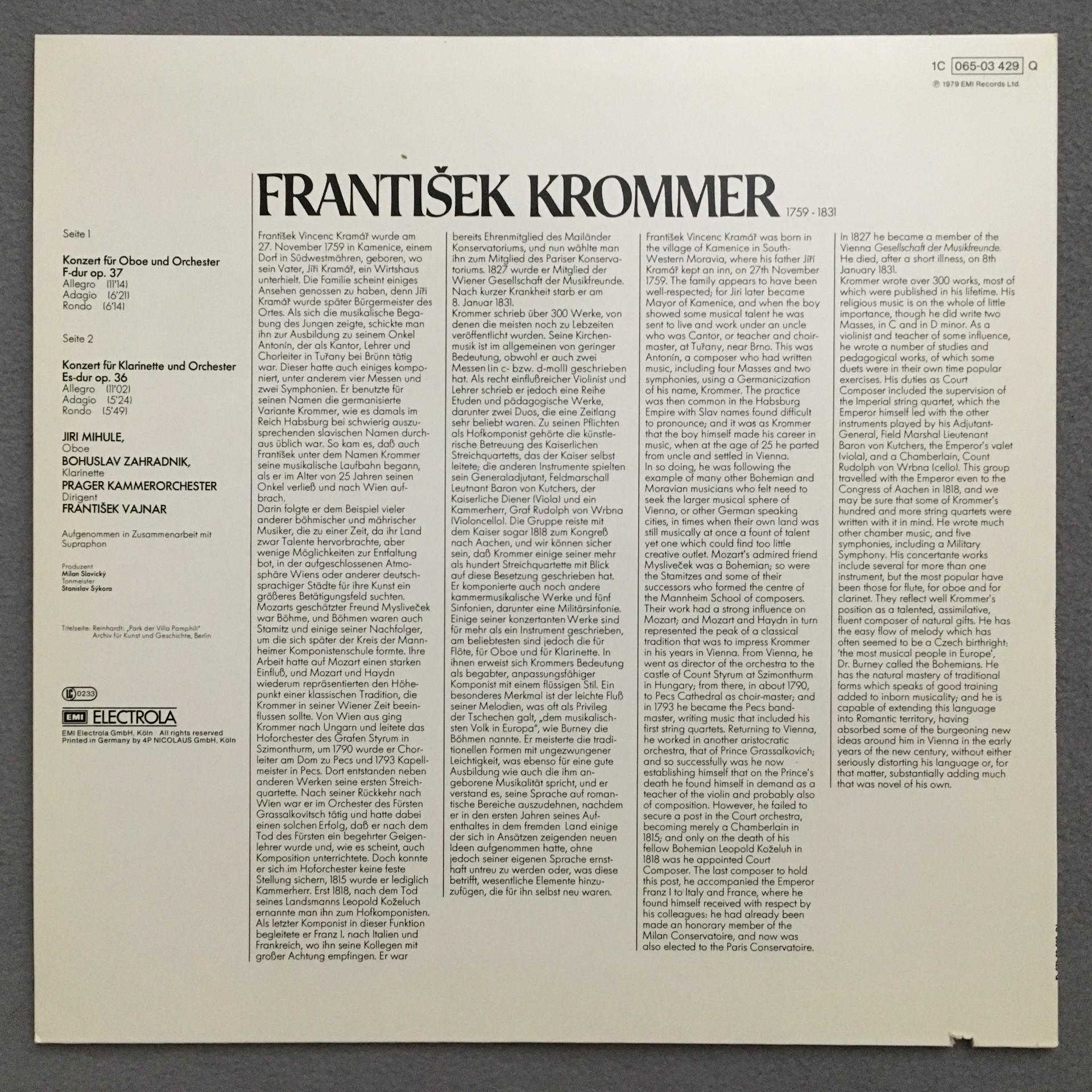 N103 Krommer Concertos Mihule Zahradnik Vajnar EMI 1C 065-03 429 Q Quadro