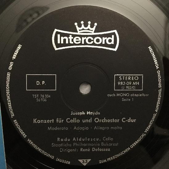 N105 Haydn Boccherini Cello Concertos Aldulescu Basarab Intercord 982-09 MH St