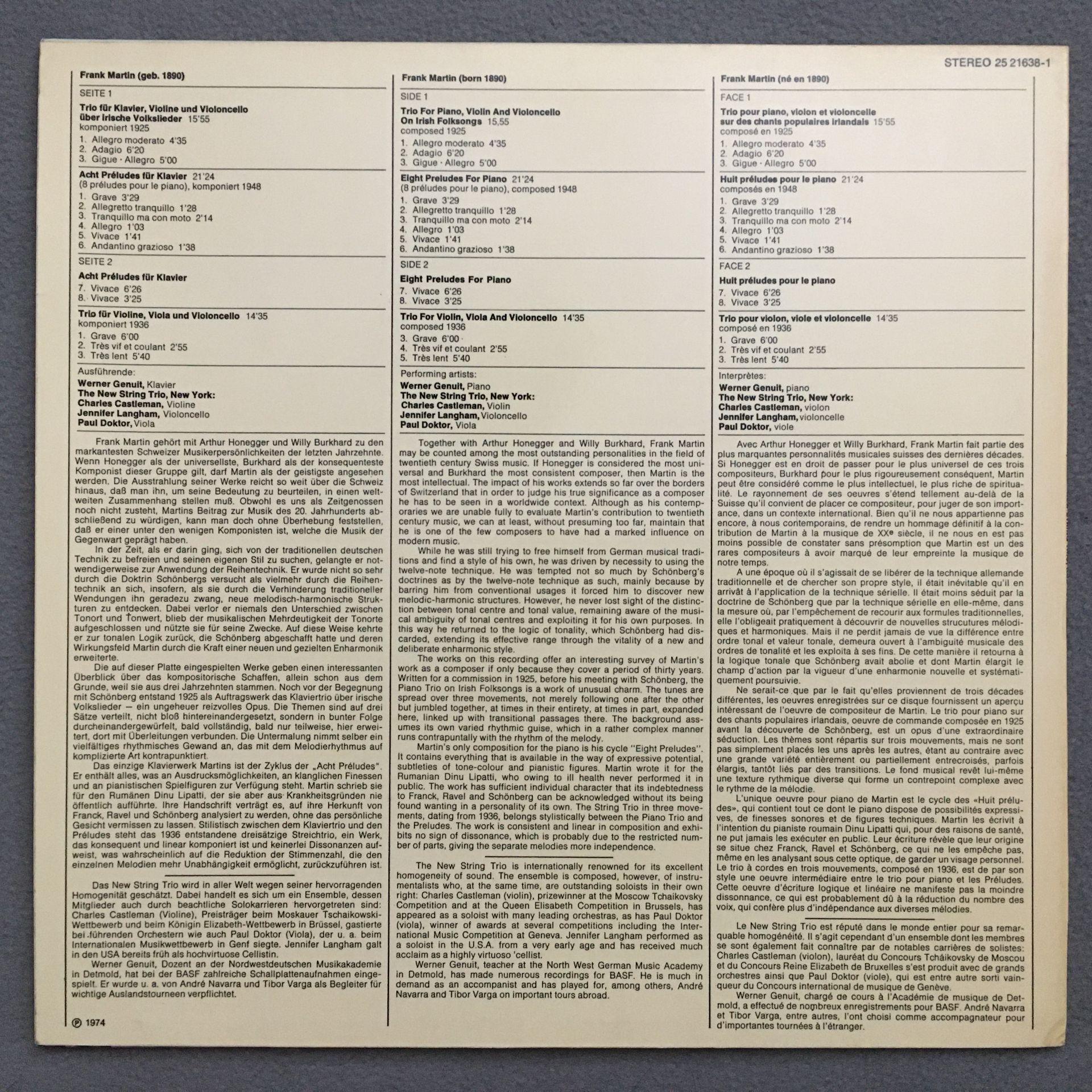 N107 Martin Trio Preludes Genuit Piano New String Trio NY BASF 25 21638-1 Stereo