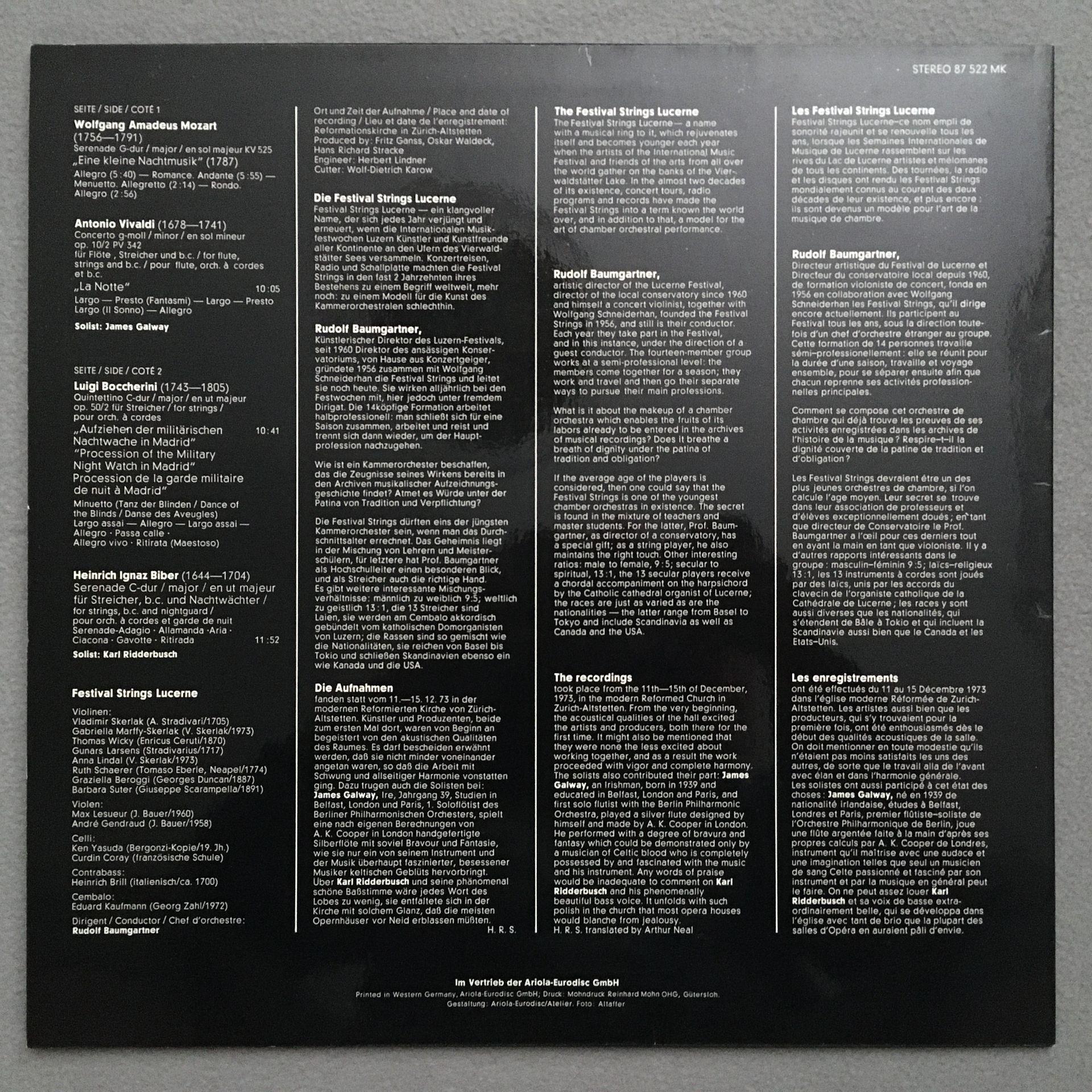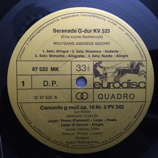 N109 Mozart Vivaldi Ridderbusch Galway Flute Baumgartner Eurodisc 87 522 MK Ster