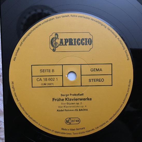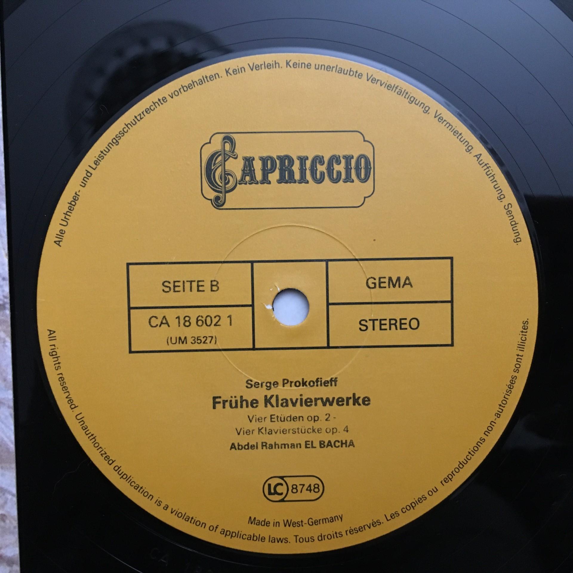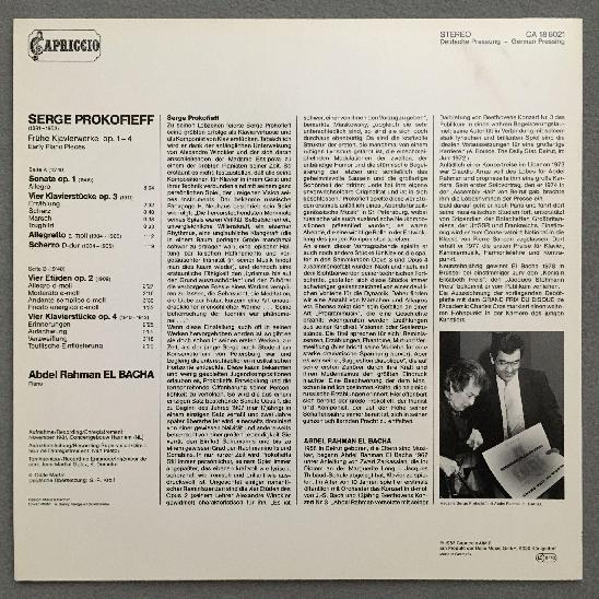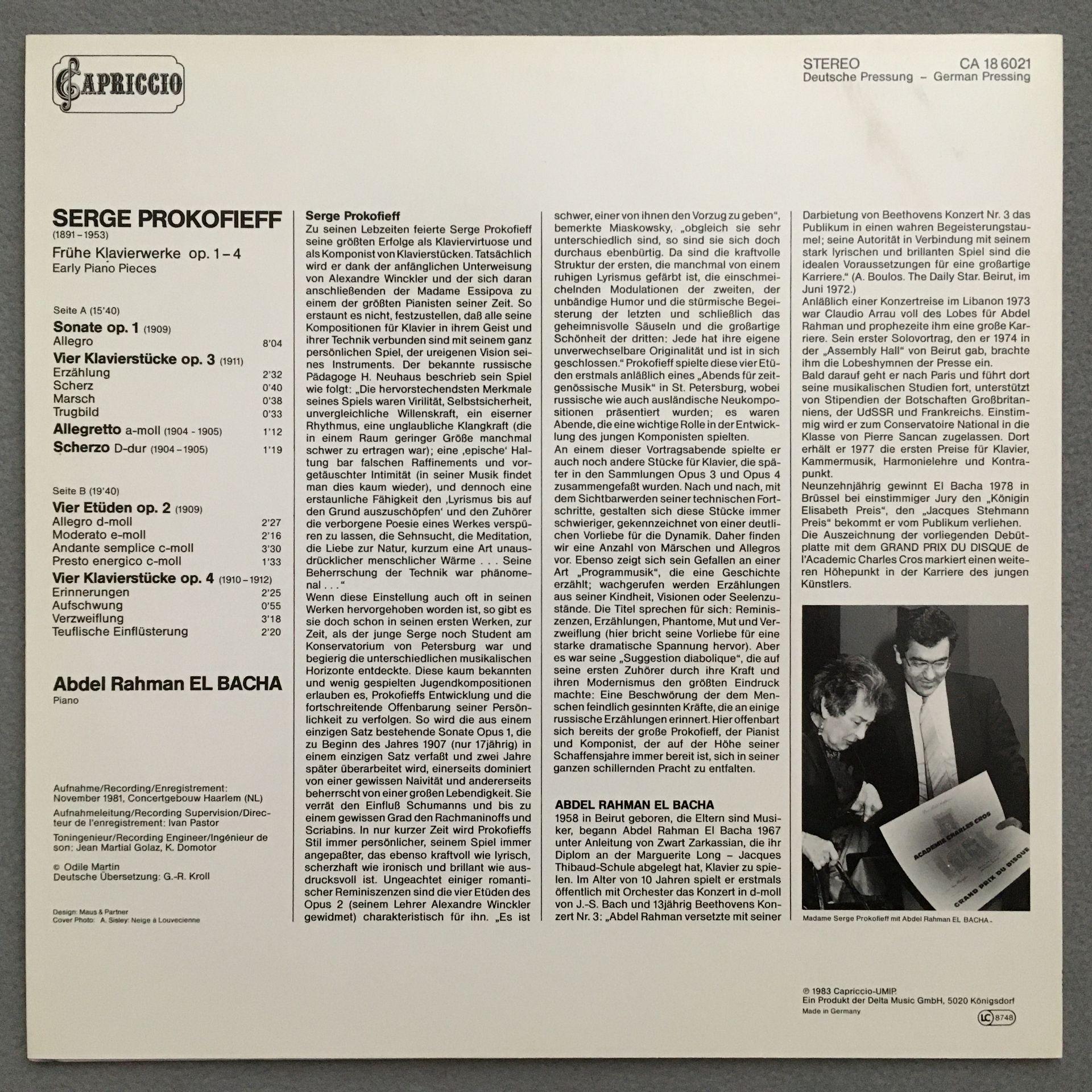 N111 Prokofiev Early Piano Works El Bacha Capriccio CA 18 6021 Stereo