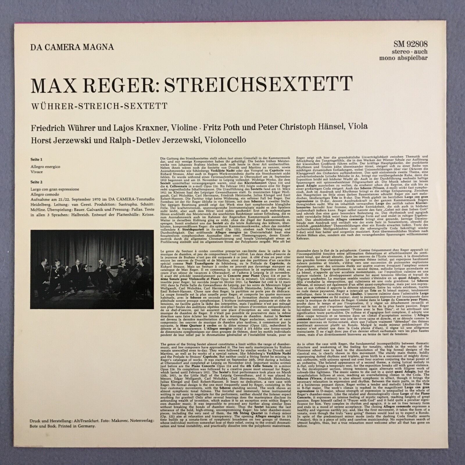 Z820 Reger Chamber Music String Sextet Wührer Da Camera Magna SM 92808 Stereo
