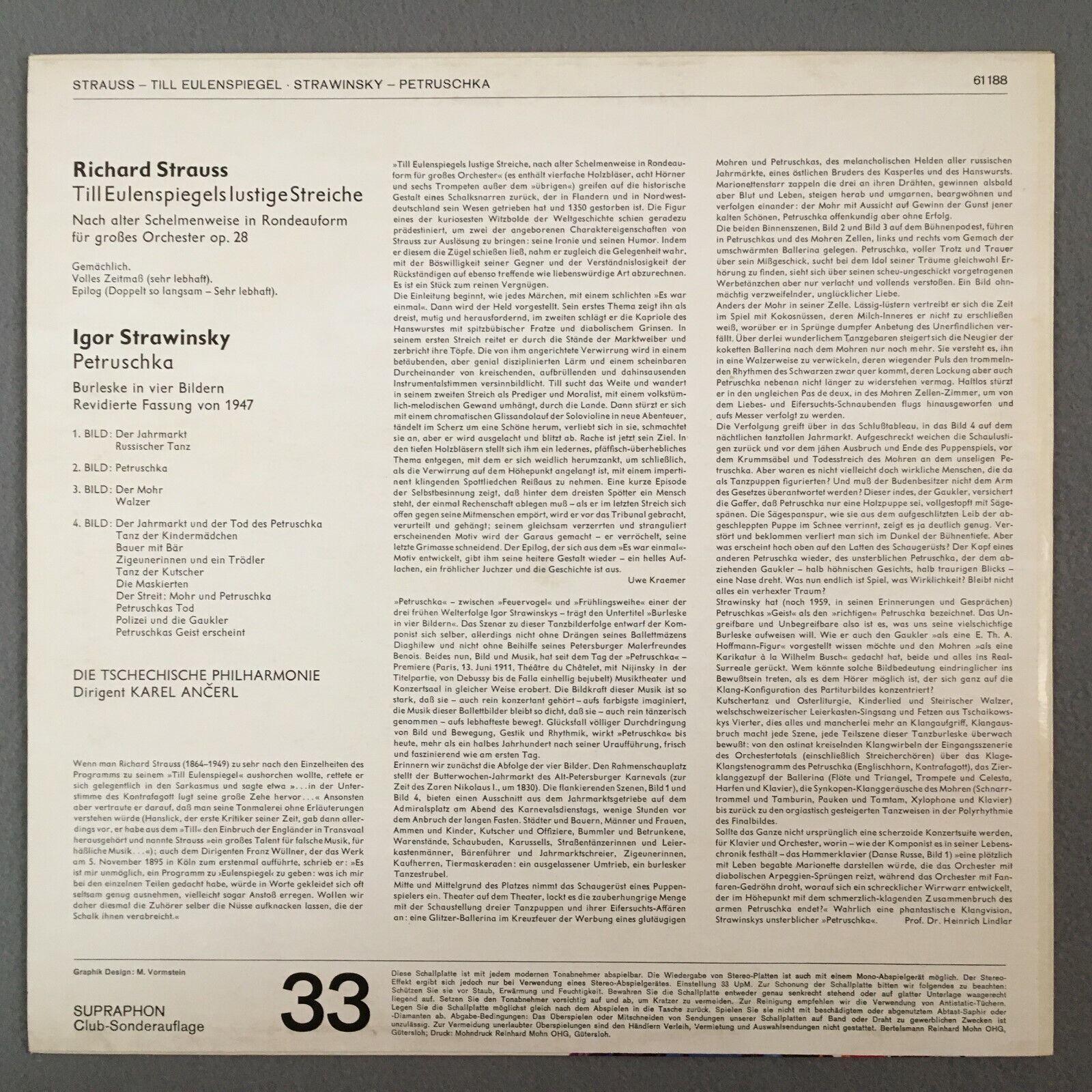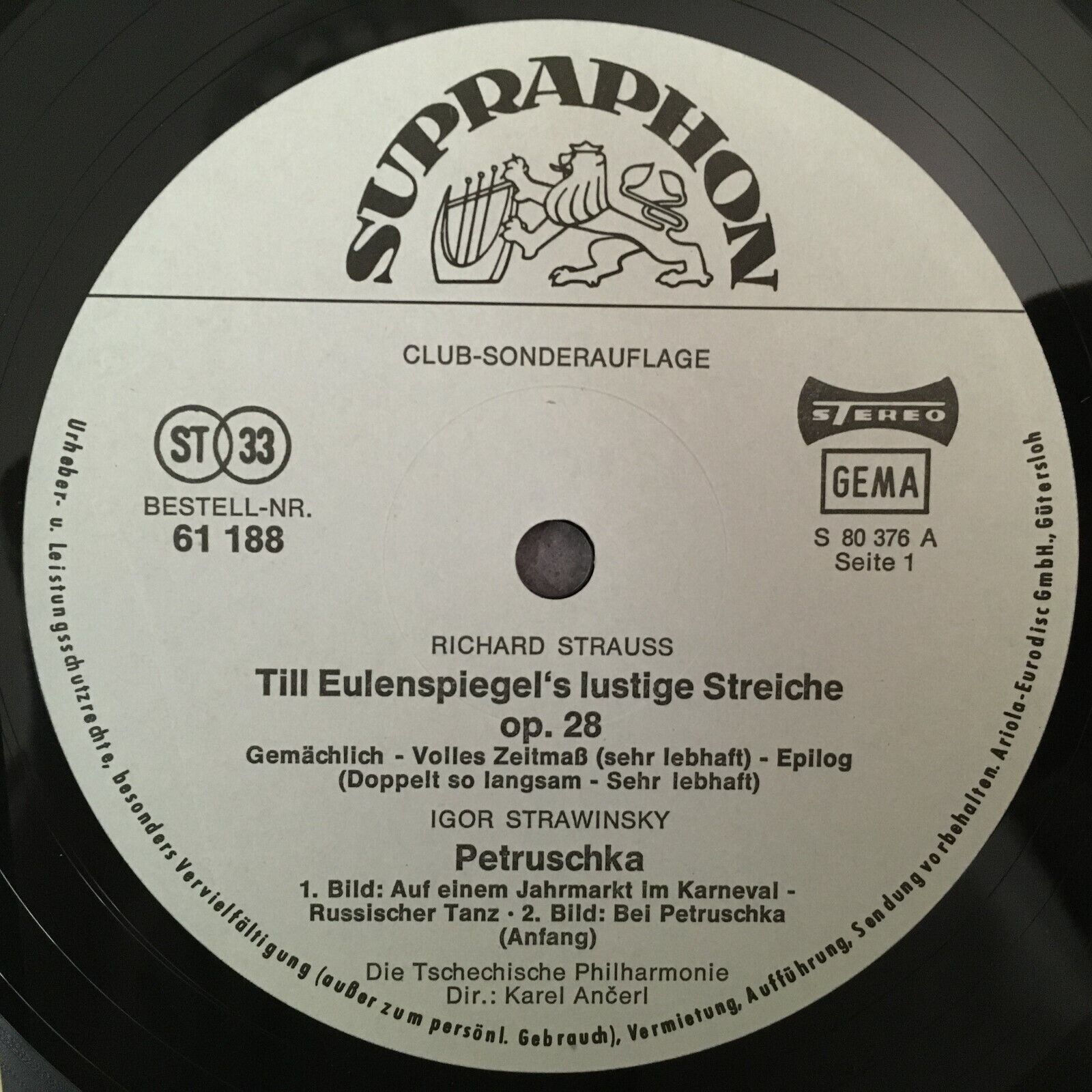 Z859 R. Strauss Eulenspiegel Stravinsky Petruschka Ancerl Supraphon 61 188 St