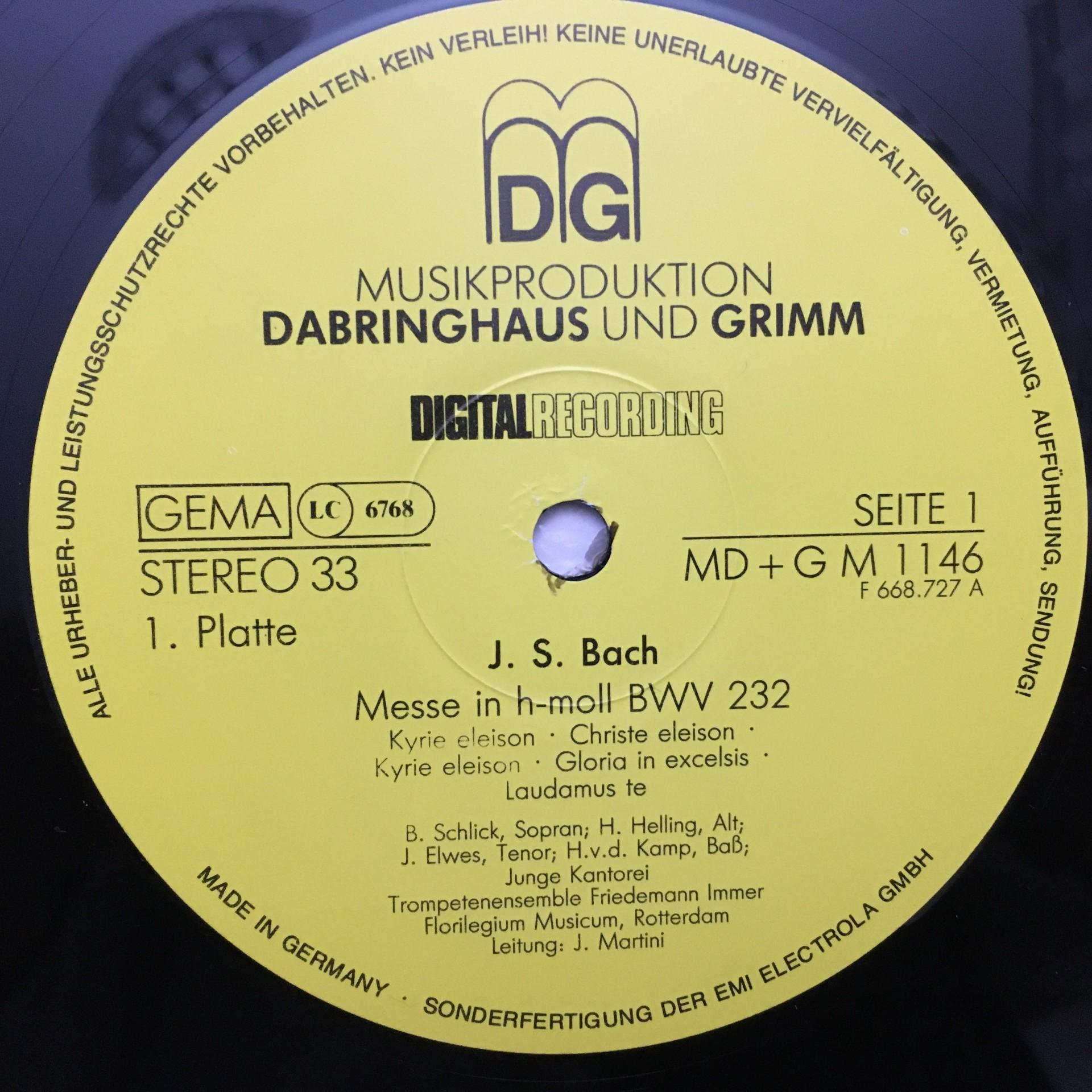 E504 Bach Mass Schlick Martini 2LP DG MD+G M 1146/47 Digital Stereo