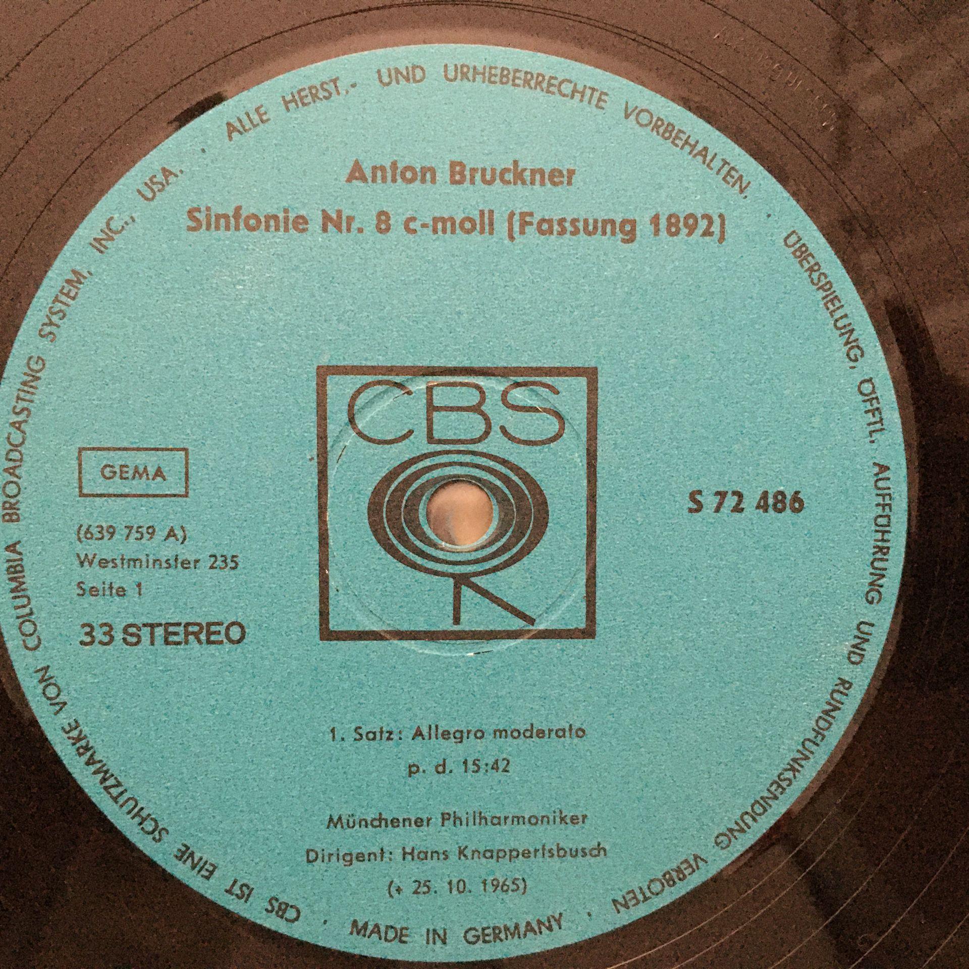 E511 Bruckner Symphony No.8 Knappertsbusch 2LP CBS S 72 486/487 Stereo