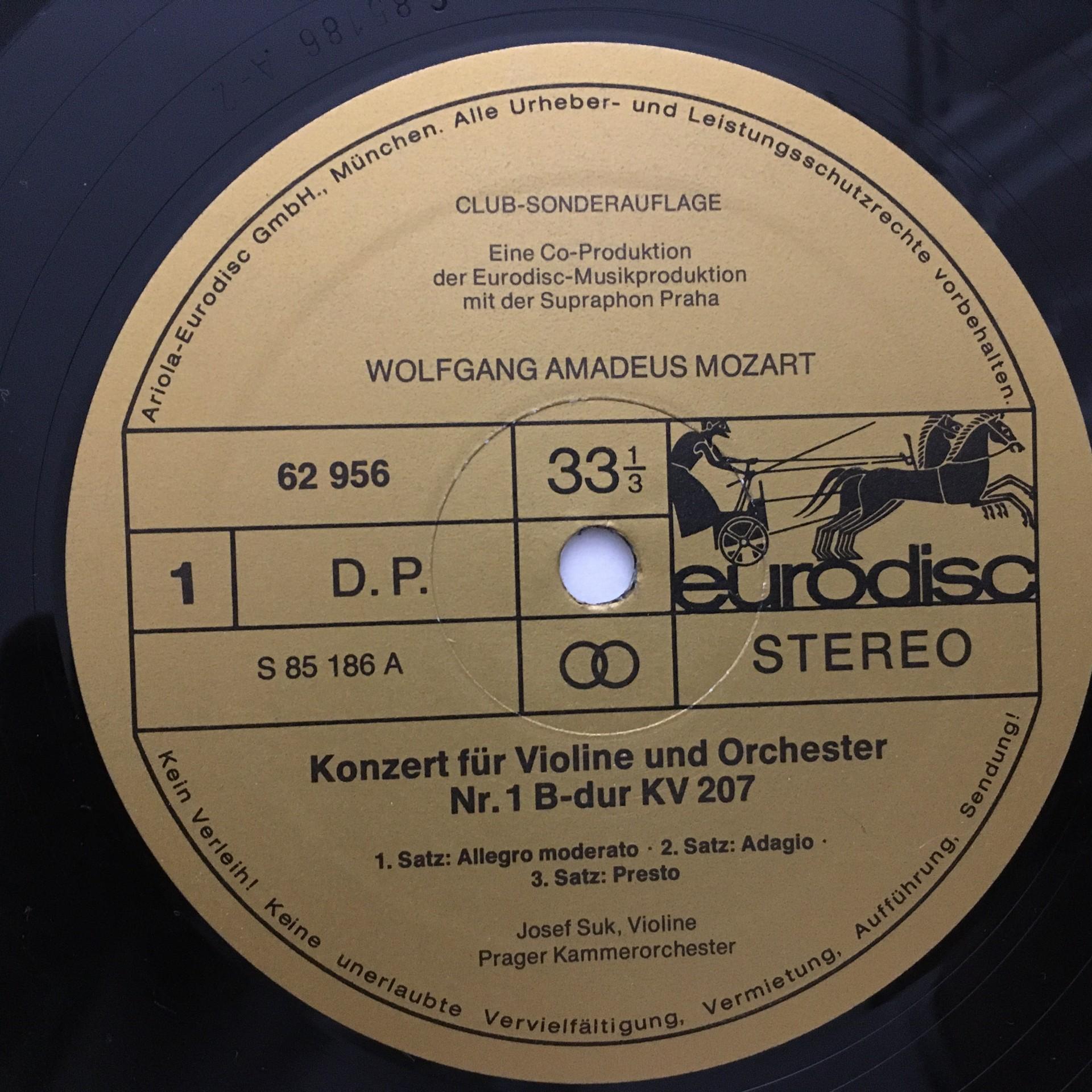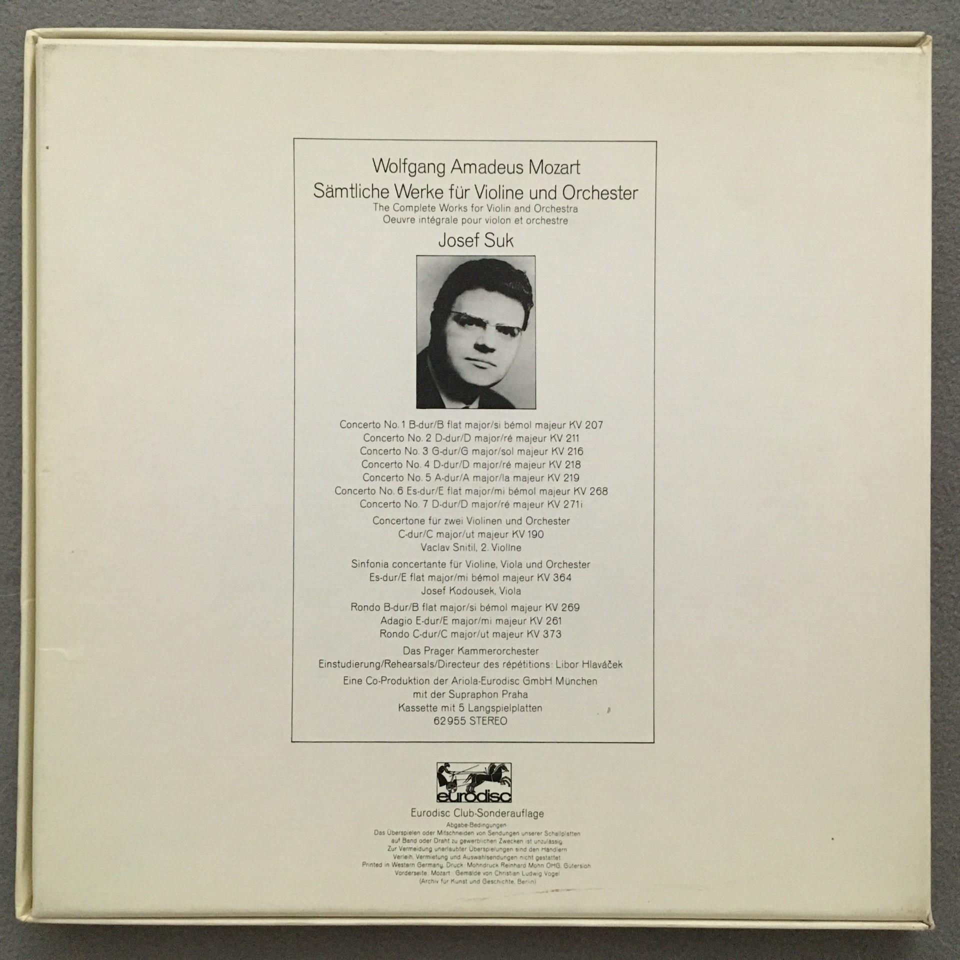 E513 Mozart Complete Works for Violin & Orchestra Suk 5LP Eurodisc 62 955 Stereo