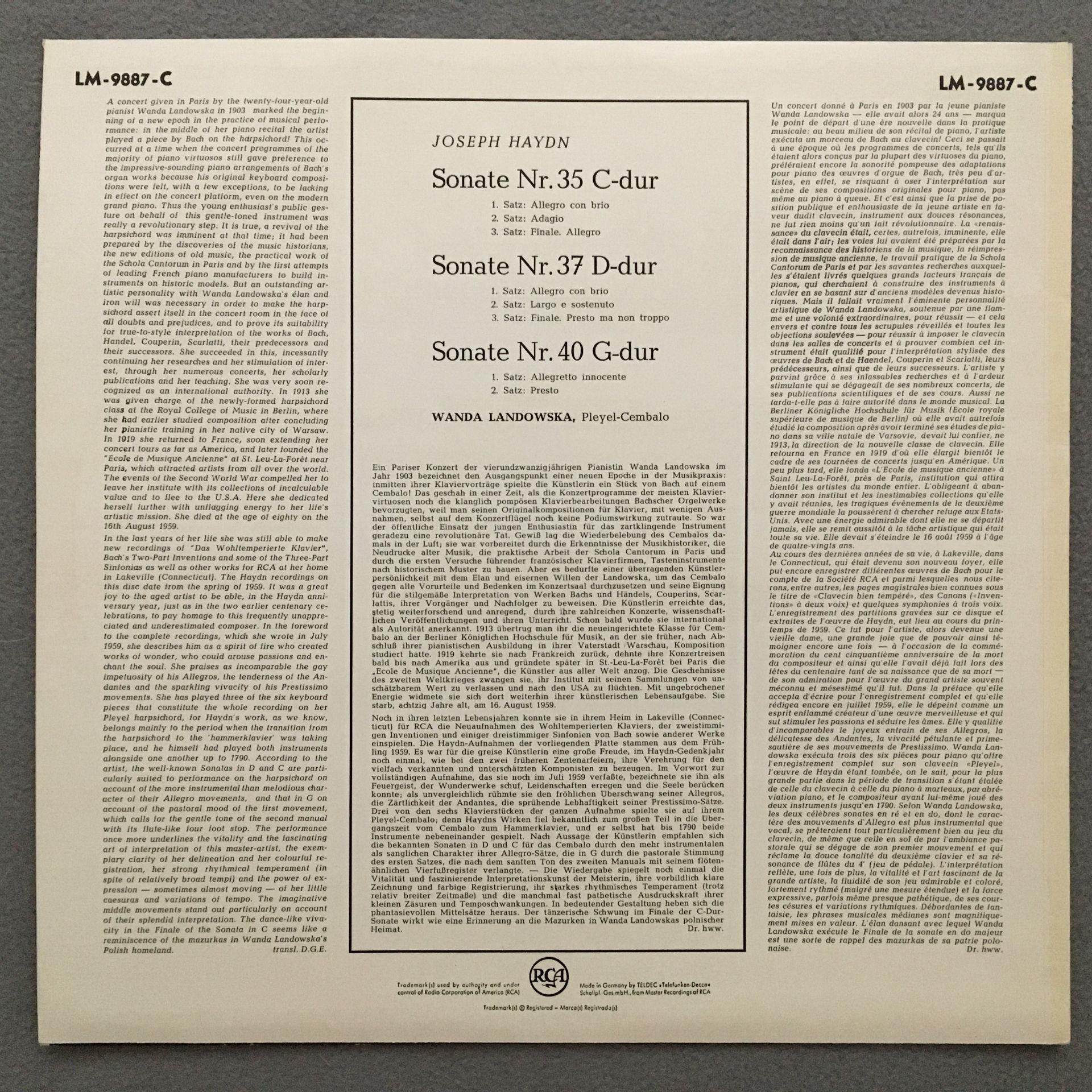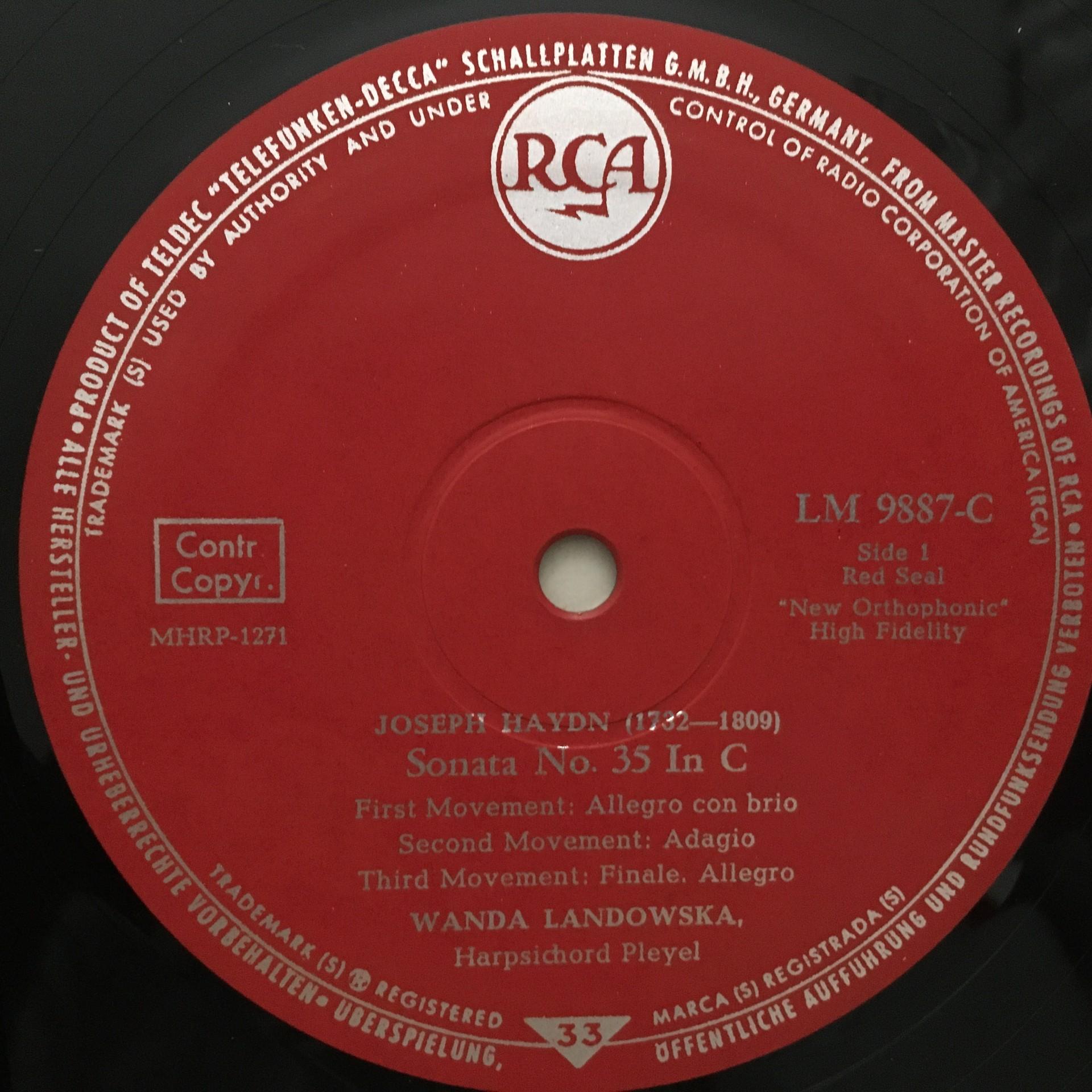 U169 Haydn Sonatas Landowska Pleyel Harpsichord RCA LM-9887-C