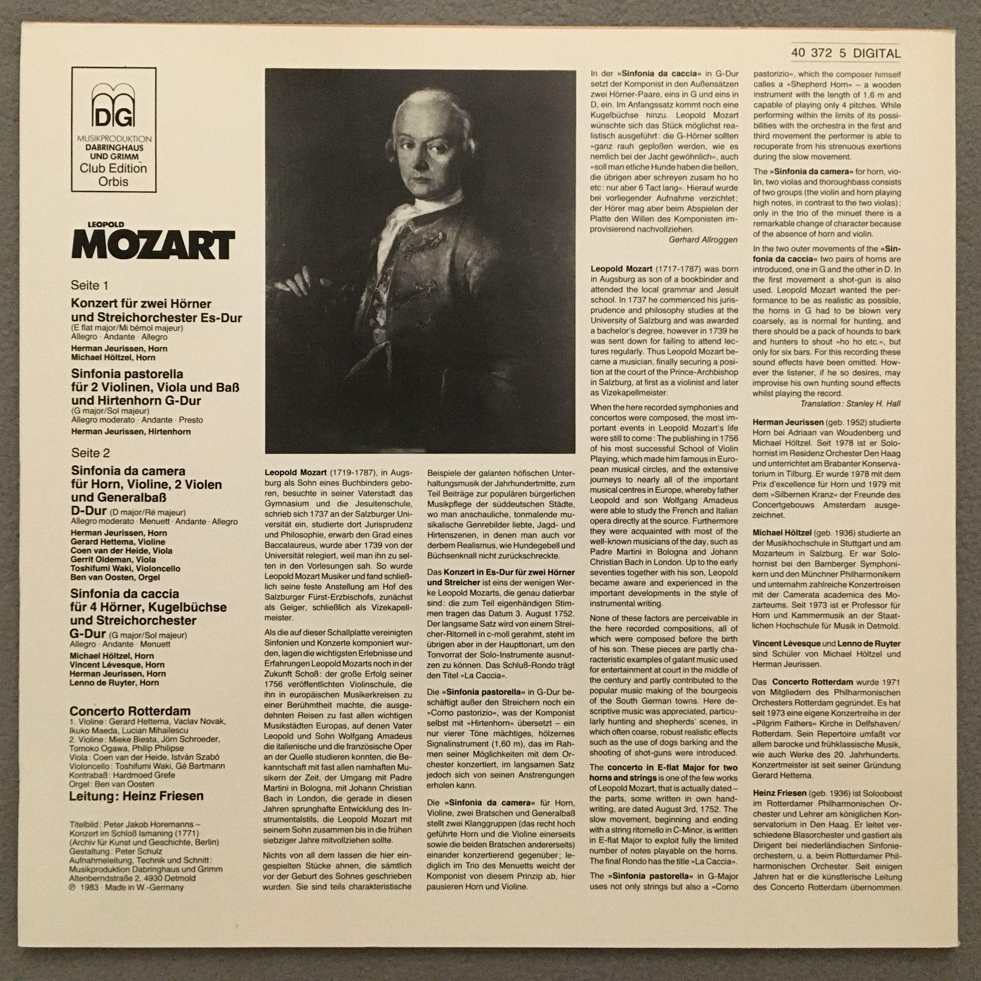 U173 L. Mozart Works for Horn & Orchestra Friesen DG 40 372 5 Digital Stereo