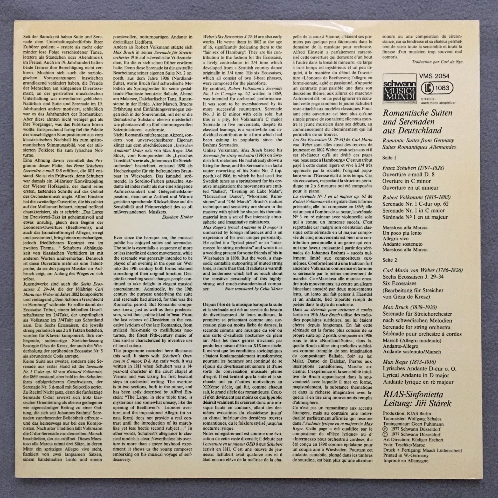 U176 Romantic Suites From Germany Reger Bruch Starek Schwann VMS 2054 Stereo